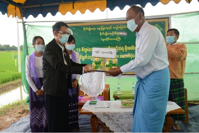 မိုးစပါးမျိုးစေ့ထုတ်တောင်သူများအား ထောက်ပံ့ငွေပေးအပ်ပွဲ အခမ်းအနားတွင် စိုက်ပျိုးရေး၊ မွေးမြူရေးနှင့် ဆည်မြောင်းဝန်ကြီးဌာန ပြည်ထောင်စုဝန်ကြီး ဒေါက်တာအောင်သူ က ကိုဗစ်-၁၉ ကာလတွင် စိုက်ပျိုးရေးဆိုင်ရာ စိုက်ပျိုးနည်းစနစ်များ၊ နည်းပညာပေးလုပ်ငန်းများ၊ နိုင်ငံပိုင်သတင်းစာများ၊ ရုပ်မြင်သံကြားများမှတဆင့် အသိပေးဆောင်ရွက်လျက်ရှိကြောင်း။