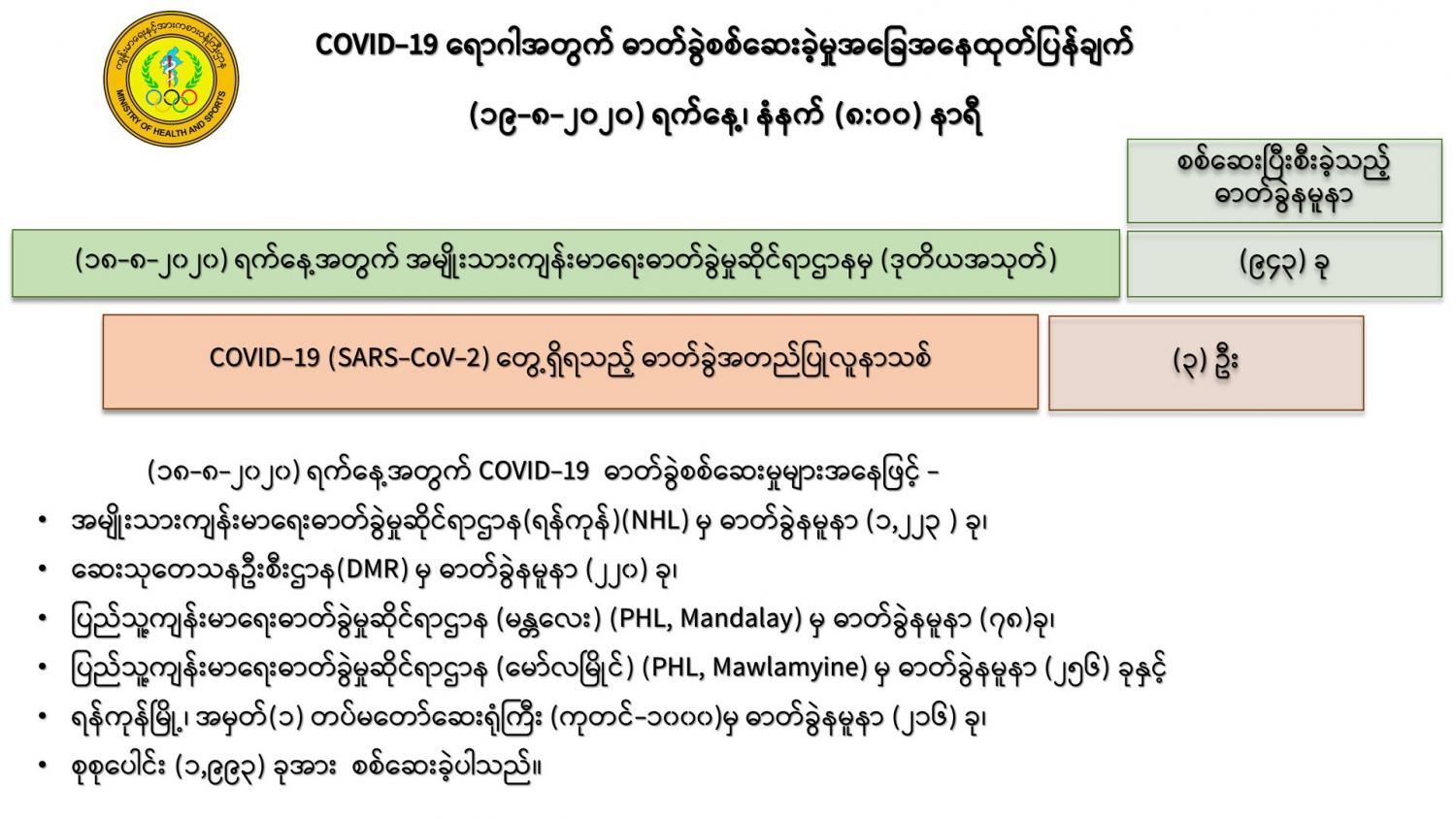 #Ministry_of_Health_and_Sports, #MoHS, #COVID19LabResults, #ကိုရိုနာဗိုင်းရပ်စ်, #ဓာတ်ခွဲအဖြေ