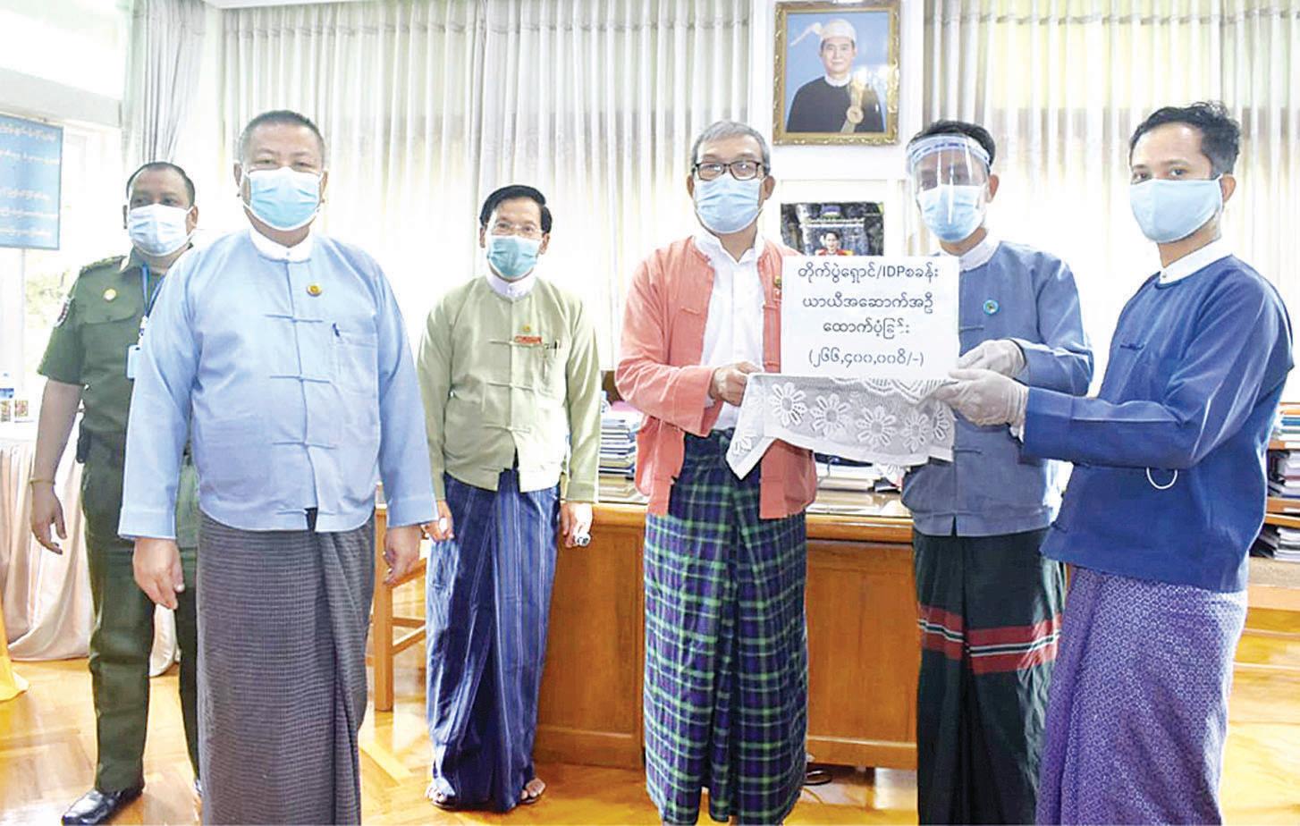 ထို့နောက် ကိုဗစ်-၁၉ စီးပွားရေး ကုစားမှုအစီအစဉ်အရ ရခိုင်ပြည်နယ် ရှိ IDP စခန်းများနှင့် တိုက်ပွဲရှောင် စခန်းများရှိ အိမ်ထောင်စုများအတွက် စားနပ်ရိက္ခာများ ဝယ်ယူနိုင်ရန် အိမ်ထောင်စု ၄၀၁၀၃ စုအတွက် စုစုပေါင်း ထောက်ပံ့ငွေကျပ် ၁၆၀၄၁၂၀၀၀ဝ နှင့် ဝန်ကြီးဌာန၏ ကိုဗစ်-၁၉ ရောဂါကာကွယ်ရေးဆိုင်ရာ ကြိုတင်ပြင်ဆင်မှု အစီအစဉ်အရ စခန်းများတွင် ပိုးတွေ့လူနာ/ သံသယ လူနာများအား သီးခြားထားရှိရန် ယာယီအဆောက်အဦ Long House အလုံး ၃၀ ဆောက်လုပ်နိုင်ရေးအတွက် စုစုပေါင်းငွေကျပ် ၂၆၆၄၀၀၀၀ဝ ကို ရခိုင်ပြည်နယ် ဘေးအန္တရာယ်ဆိုင်ရာ စီမံခန့်ခွဲမှုဦးစီးဌာန ညွှန်ကြားရေးမှူး က ရခိုင်ပြည်နယ် ဝန်ကြီးချုပ်နှင့် အဖွဲ့ထံသို့ ပေးအပ်ခဲ့ကြောင်း သိရ သည်။