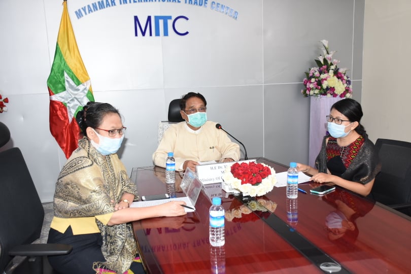 မြန်မာကုန်သွယ်မှု မြှင့်တင်ရေးအဖွဲ့က ကြီးမှူးကျင်းပသည့် အပြည်ပြည်ဆိုင်ရာ အွန်လိုင်းကုန်စည်ပြပွဲ Myanmar International Expo of Organic and Natural Products ဖွင့်ပွဲအခမ်းအနားကို ယနေ့နံနက် ၁၀ နာရီကရန်ကုန်မြို့၊ ကုန်သည်လမ်းရှိ မြန်မာအပြည်ပြည်ဆိုင်ရာ ကုန်သွယ်မှုဗဟိုဌာနတွင် ကျင်းပသည်။