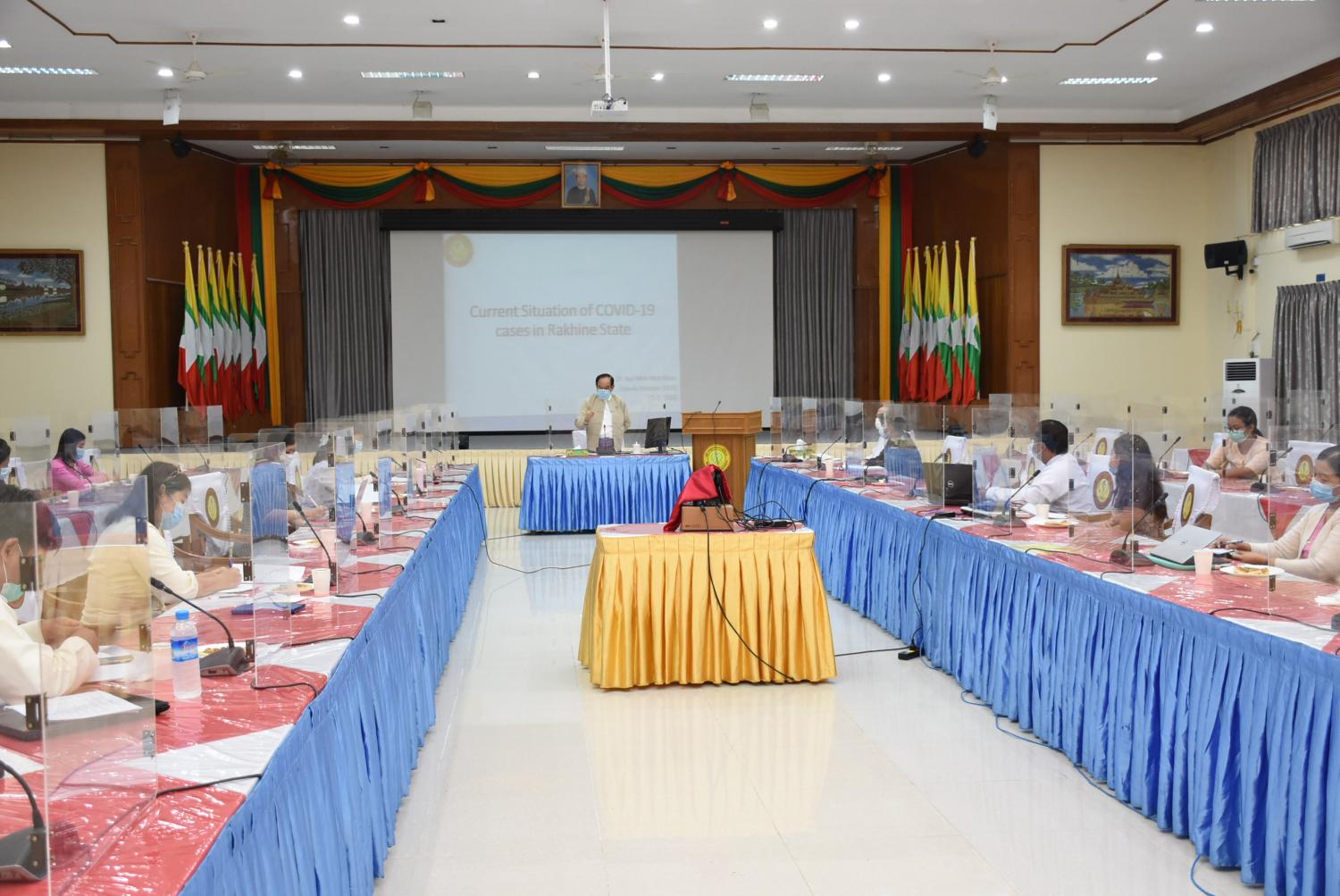 ရခိုင်ပြည်နယ်တွင် ကိုဗစ်-၁၉ ကာကွယ်ထိန်းချုပ်ရေးလုပ်ငန်းများ ဆောင်ရွက်နေမှုနှင့် စပ်လျဉ်း၍ ဗဟို ကူးစက် ရောဂါတိုက်ဖျက်ရေးဌာနခွဲမှ ဘက်စုံဆန်းစစ်သုံးသပ်ခြင်း အစည်းအဝေးကျင်းပ