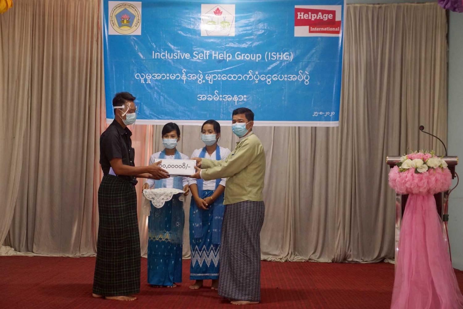မန္တလေးတိုင်းဒေသကြီး၊ မြင်းခြံမြို့ ရွှေပြည်စိုးသာသနာ့ဗိမ္မာန်တွင်Inclusive Self – Help Group (ISHG) လူမှုအားမာန်အဖွဲ့များသို့ ထောက်ပံ့ငွေပေးအပ်ခြင်းကို ယမန်နေ့ နေ့လယ် ၁ နာရီအချိန်က ကျင်းပပြုလုပ်ခဲ့ကြောင်း သိရသည်။