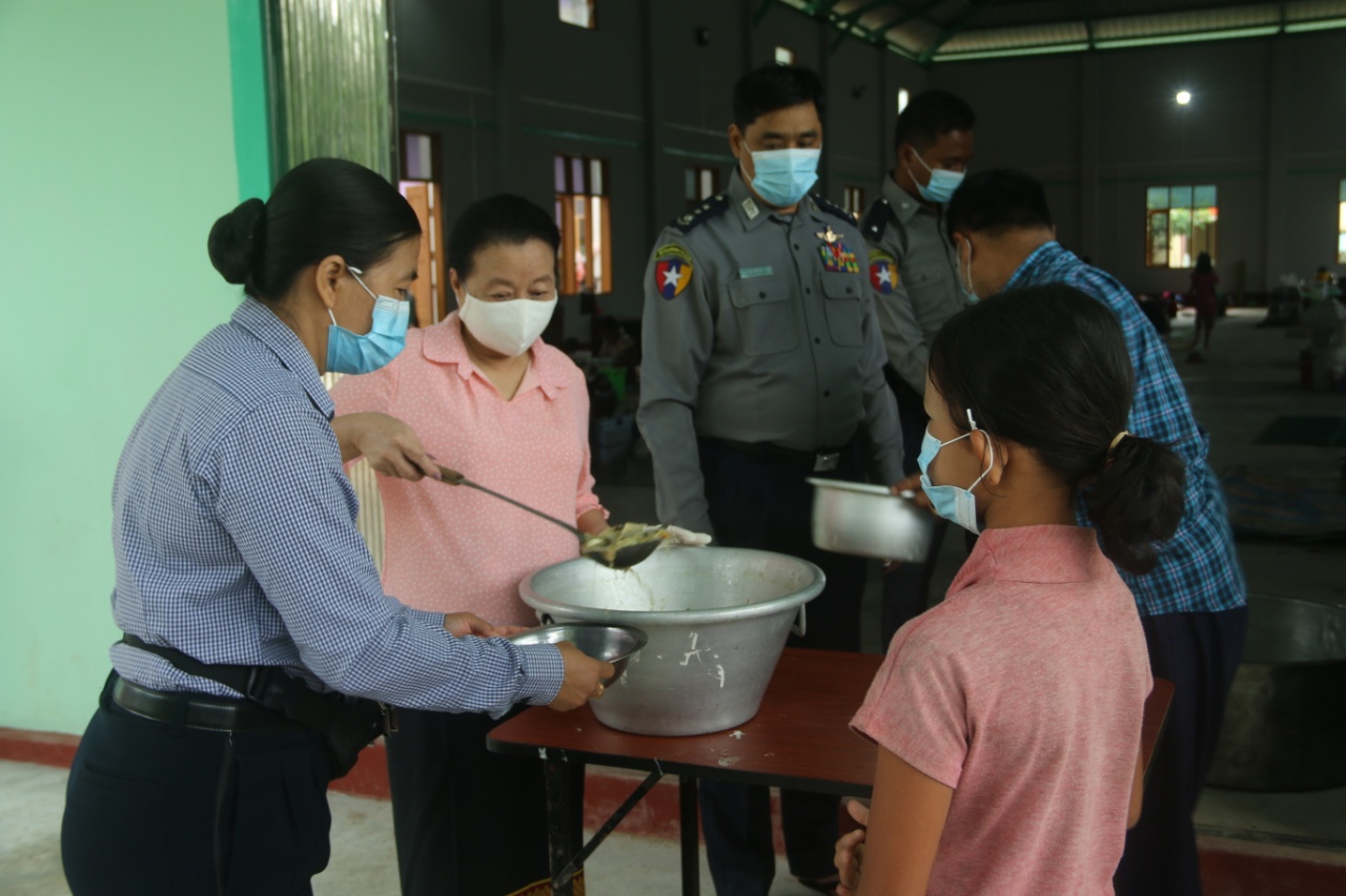 သံလွင်မြစ်ရေမြှင့်တက်လာမှုကြောင့် ဘားအံမြို့ မြေပိုင်းရပ်ကွက်အချို့ရှိ လူနေအိမ်များတွင် မြစ်ရေဝင်ရောက်ပြီး ဆက်လက်နေထိုင်၍မရတော့သည့်အတွက် ရေဘေးကယ်ဆယ်ရေးစခန်း (၆) ခုဖွင့်လှစ်၍ ပြောင်းရွှေ့နေထိုင်စေခဲ့ရာ ယနေ့နံနက်ပိုင်းက ဘားအံမြို့အမှတ် (၅) ရပ်ကွက် Cyclone Shelter ရှိ ရေဘေးရှောင် အိမ်ထောင်စုများအား ကရင်ပြည်နယ်ဝန်ကြီးချုပ် ဒေါ်နန်းခင်ထွေးမြင့်နှင့်တာဝန်ရှိသူများက အာဟာရဖြည့်စွက်နံနက်စာကြာဇံဟင်းခါး သွားရောက်ကျွေးမွေးခဲ့သည်။