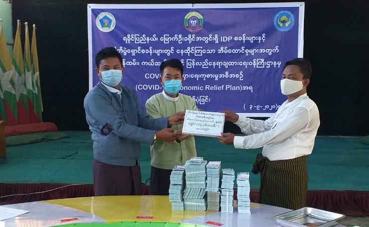 ကိုဗစ်-၁၉ စီးပွားရေးကုစားမှုအစီအစဉ် (COVID-19 Economic Relief Plan -CERP) အရ ရခိုင်ပြည်နယ်အတွင်းရှိ IDP/ တိုက်ပွဲရှောင်စခန်းများမှ နေရပ်စွန့်ခွာအိမ်ထောင်စုများအား စား သောက်ကုန်(၅)မျိုးဝယ်ယူရန် အိမ်ထောင်စု(၁)စု လျှင် (၄၀,၀၀ဝိ/-)နှုန်းဖြင့် ထောက်ပံ့နိုင်ရေးအတွက် လူမှုဝန်ထမ်း၊ ကယ်ဆယ်ရေးနှင့်ပြန်လည်နေရာချထားရေး ဝန်ကြီးဌာန၊ ပြည်ထောင်စုဝန်ကြီးမှ ရခိုင်ပြည်နယ်ဝန်ကြီးချုပ် ဦးဆောင်သည့် ရခိုင်ပြည်နယ်အစိုးရအဖွဲ့သို့ ထောက်ပံ့ငွေ လွှဲပြောင်း ပေးအပ်ပွဲအခမ်းအနားအား ဩဂုတ် ၂၁ ရက်တွင် Virtual Meeting အဖြစ် ကျင်းပခဲ့ပြီး ဖြစ်သည်။