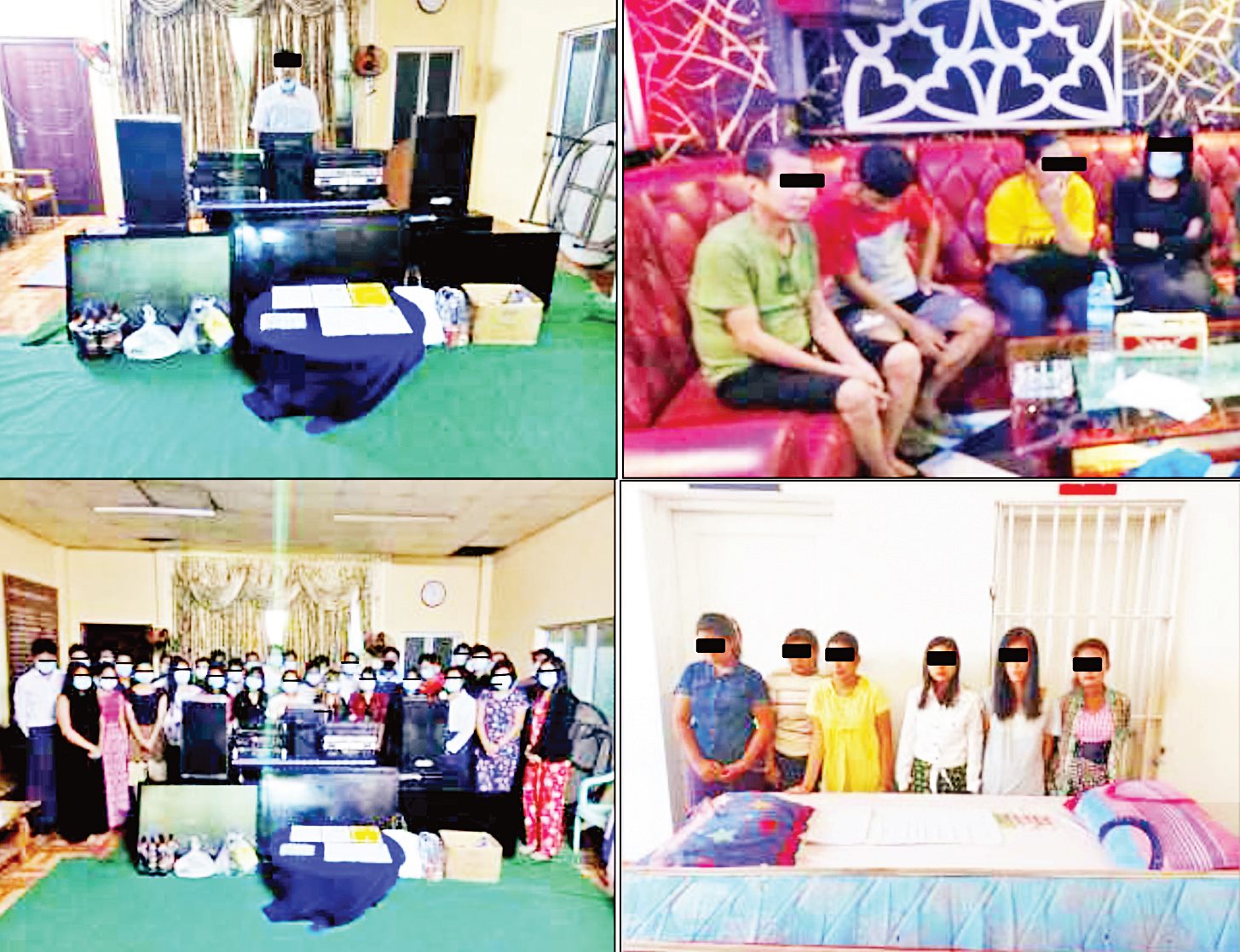 တိုင်းဒေသကြီးနှင့် ပြည်နယ်အသီးသီး၌ ကိုဗစ်-၁၉ ရောဂါကာကွယ်ရေး စည်းကမ်းချက်များအား လိုက်နာခြင်းမရှိသည့် KTV ၊ Bar ၊ အနှိပ်ခန်းနှင့် ပြည့်တန်ဆာလုပ်ငန်းလုပ်ကိုင်နေသည့် နေအိမ်၊ ဆိုင်များ အား ဖော်ထုတ်ဖမ်းဆီးအရေးယူ