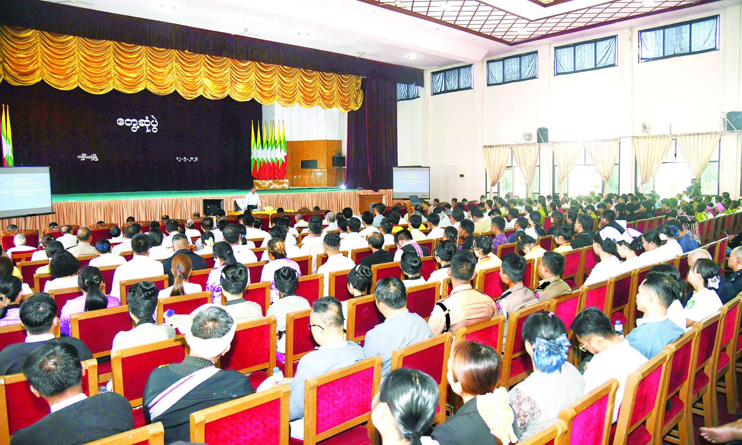 နိုင်ငံတော်အစိုးရအနေဖြင့် နိုင်ငံတော်ကို ဘက်စုံဖွံ့ဖြိုးတိုးတက်စေရေးအတွက် အင်တိုက်အားတိုက်ဖြင့် ကြိုးပမ်းဆောင်ရွက်လျက်ရှိပြီး တိုင်းဒေသကြီးနှင့် ပြည်နယ်များအနေဖြင့်လည်း မိမိတို့ဒေသအလိုက် ဖွံ့ဖြိုးတိုးတက်ရေးကို တတ်စွမ်းသရွေ့ ကြိုးပမ်းဆောင်ရွက်ရန်လိုကြောင်း၊ ဒေသတစ်ခုဖွံ့ဖြိုးတိုးတက်ရေးအတွက် တည်ငြိမ်အေးချမ်းမှုရှိရန် မဖြစ်မနေလိုအပ်မည်ဖြစ်သဖြင့် ဒေသခံများအနေဖြင့် မိမိတို့ဒေသ ဖွံ့ဖြိုးတိုးတက်ရေး ကြိုးပမ်းဆောင်ရွက်ပေးကြစေလိုကြောင်း၊ ဒေသတွင်ရှိသည့် အုပ်ချုပ်ရေးအဖွဲ့အစည်းများ၊ မြို့မိမြို့ဖများ၊ ဒေသခံများအားလုံး တက်ညီလက်ညီဖြင့် ဝိုင်းဝန်းကြိုးပမ်းကြမည်ဆိုပါက ဒေသအလိုက် တည်ငြိမ်အေးချမ်းဖွံ့ဖြိုးတိုးတက်လာမည်ဖြစ်ပြီး ထိုမှတစ်ဆင့် တစ်နိုင်ငံလုံးအတိုင်းအတာဖြင့် ဖွံ့ဖြိုးတိုးတက်လာမည်ဖြစ်သည့်အတွက် အားလုံးကဝိုင်းဝန်းဆောင်ရွက်ပေးကြစေလိုကြောင်းဖြင့် ပြောကြားသည်။