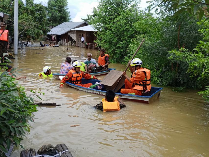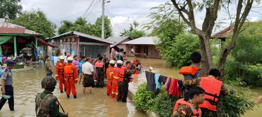 ကချင်ပြည်နယ်၊ ဗန်းမော်ခရိုင်၊ ရွှေကူမြို့နယ်အတွင်း ဧရာဝတီမြစ်ရေမြင့်တက်လာမှုကြောင့် မြေနိမ့်ပိုင်းရှိ လူနေအိမ်ခြံဝန်းနှင့်လမ်းများသို့ မြစ်ရေဝင်ရောက်လျက်ရှိပြီး နေထိုင်ရန်အခက်အခဲရှိသော အိမ်ထောင်စုအချို့အား တပ်မ(၈၈)ဗျူဟာမှူး ဒုတိယဗိုလ်မှူးကြီးအောင်သူရနှင့်တပ်မတော်သားများ၊ နယ်မြေခံတပ်မှတပ်မတော်သားများနှင့် မြို့နယ်ရဲတပ်ဖွဲ့ဝင်များ၊ မြို့နယ်သဘာဝဘေးအန္တရာယ်စီမံခန့်ခွဲရေးကော်မတီဥက္ကဋ္ဌဦးမြင့်ထွန်းနှင့်အဖွဲ့ဝင်များက ကူညီကယ်ဆယ်ရေးလုပ်ငန်းများ ဆောင်ရွက်ပေးလျက်ရှိပြီး ရေကြီးနစ်မြုပ်၍ ရေဘေးကယ်ဆယ်ရေးစခန်းများသို့ ရွှေ့ပြောင်းနေထိုင်ကြသော ရေဘေးသင့်အိမ်ထောင်စုများအား ယနေ့နံနက် ၁၀ နာရီခန့်တွင် အခြေခံစားသောက်ကုန်များ ထောက်ပံ့ပေးအပ်ခြင်းနှင့် ကျန်းမာရေးစောင့်ရှောက်မှုများ ဆောင်ရွက်ပေးခဲ့ကြောင်း သိရသည်။