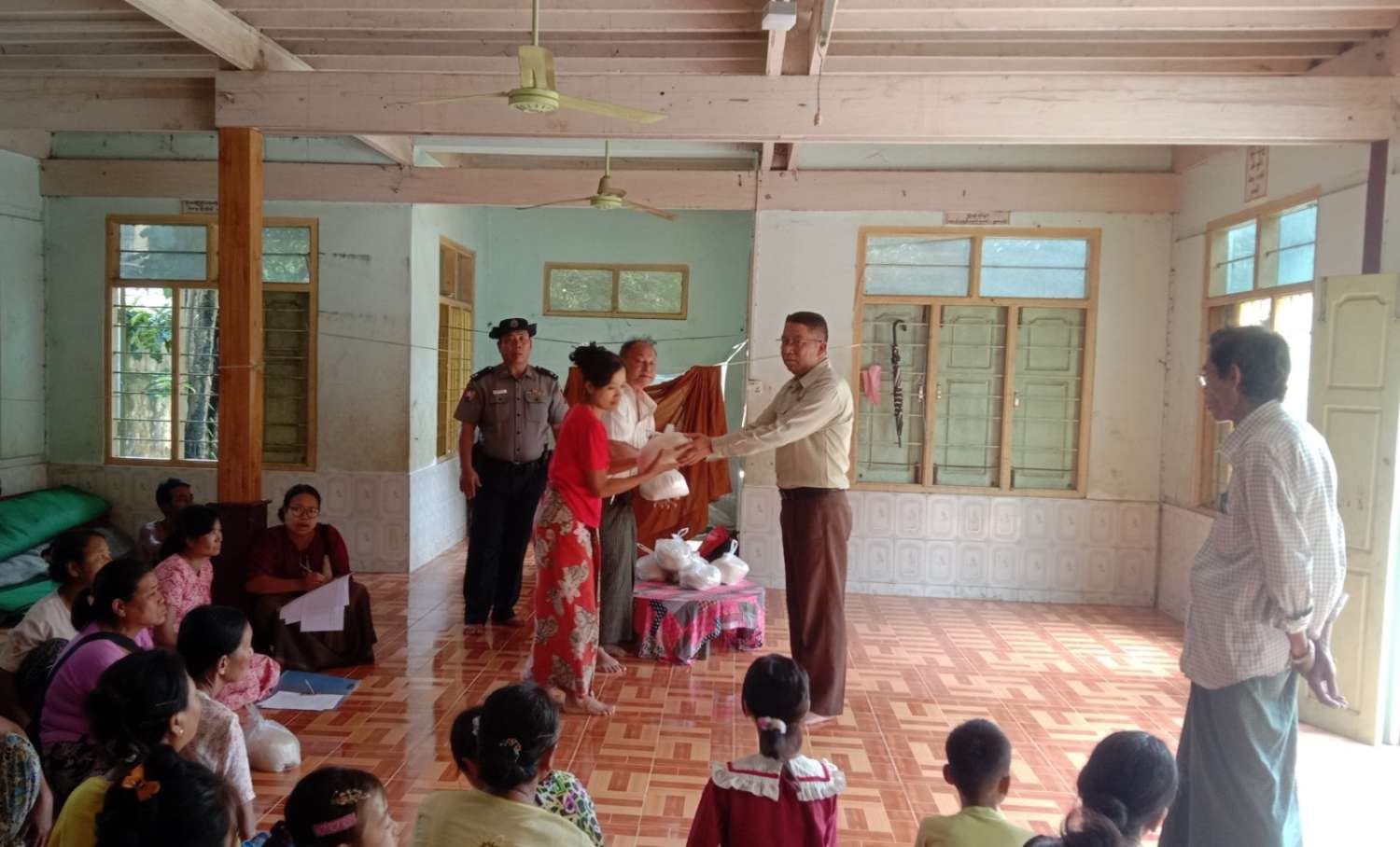 ထိုသို့ပြောင်းရွှေ့လာသော အိမ်ထောင်စုများအား တပ်မ(၈၈)ဗျူဟာမှူး ဒုတိယဗိုလ်မှူးကြီးအောင်သူရမှ တစ်အိမ်ထောင်လျှင် ကြက်ဥ(၁၀)လုံး၊ ခေါက်ဆွဲခြောက်(၁၀)ထုတ် ၊ ငွေ(၁၀၀၀ဝိ/)ကျပ်တို့ကိုလည်းကောင်း၊ မြို့နယ်သဘာဝဘေးအန္တရာယ်စီမံခန့်ခွဲရေးကော်မတီမှ တစ်အိမ်ထောင်လျှင် ဆန်(၂)ပြည်ကိုလည်းကောင်း ထောက်ပံ့ပေးအပ်ခဲ့ကြပြီး တပ်မတော်ဆေးတပ်ဖွဲ့မှ ရေဘေးရှောင်ပြည်သူများအား ကျန်းမာရေးစောင့်ရှောက်မှုများ ဆောင်ရွက်ပေးခဲ့ကြောင်း သိရသည်။