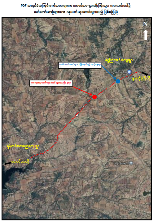 PDF အမည်ခံအကြမ်းဖက်သမားများသည် အများပြည်သူသွားလာလျက်ရှိသော လမ်းများပေါ်၌ ခရီးသွားပြည်သူများအား တားဆီးစစ်ဆေးခြင်း၊ ဆက်ကြေးကောက်ခံခြင်း၊ ပစ္စည်းများလုယက်ယူဆောင်ခြင်းနှင့် ၎င်းတို့အား ထောက်ခံအားပေးမှုမရှိသည့် ခရီးသွားပြည်သူများနှင့် ဒေသခံပြည်သူများအား ဖမ်းဆီးသတ်ဖြတ်ခြင်းများကို ကျူးလွန်လျက်ရှိပြီး အဆိုပါအကြမ်းဖက်သမားများအား ချေမှုန်းနိုင်ရေးလုံခြုံရေးတပ်ဖွဲ့ဝင်များက ပိတ်ဆို့ရှာဖွေစစ်ဆေးခြင်းနှင့် ခရီးသွား ပြည်သူများ ဘေးကင်းလုံခြုံစွာသွားလာနိုင်ရေးအတွက် လုံခြုံရေးလုပ်ငန်းများကို တာဝန်သိပြည်သူများနှင့်ပူးပေါင်း၍ တိုးမြှင့်ဆောင်ရွက်လျက်ရှိကြောင်း သတင်းရရှိသည်။