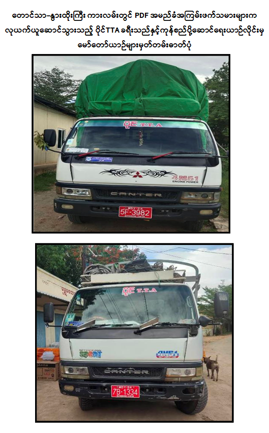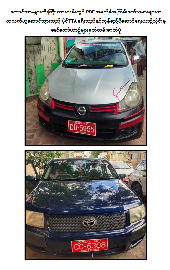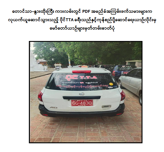 ဖြစ်စဉ်မှာ ဇူလိုင် ၂ ရက် နံနက် ၉ နာရီ ၄၅ မိနစ်ခန့်တွင် PDF အမည်ခံ အကြမ်းဖက်သမားများသည် တောင်သာ-နွားထိုးကြီးမြို့နယ် ကားလမ်းအတိုင်းသွားလာနေသည့် ခရီးသွားမော်တော်ယာဉ်များအနက် “ပိုင် TTA” ခရီးသည်နှင့် ကုန်စည်ပို့ဆောင်ရေး မော်တော်ယာဉ်များကို တားဆီးစစ်ဆေးခြင်းများပြုလုပ်၍ ယာဉ်မောင်းများနှင့် ခရီးသည်များအား ပြန်လွှတ်ပေးပြီး “ပိုင် TTA” ပိုင်ဆိုင်သည့် AD Van မော်တော်ယာဉ် ၄ စီး၊ Succed မော်တော်ယာဉ် ၂ စီး၊ Probox မော်တော်ယာဉ် ၃ စီးနှင့် ၆ ဘီးကုန်တင်ယာဉ် ၂ စီး၊ စုစုပေါင်းမော်တော်ယာဉ် ၁၁ စီးတို့အား လုယက်ယူဆောင်၍ နွားထိုးကြီးမြို့နယ်ဘက်သို့ မောင်းနှင်ထွက်သွားခဲ့ကြောင်း သိရှိရသည်။