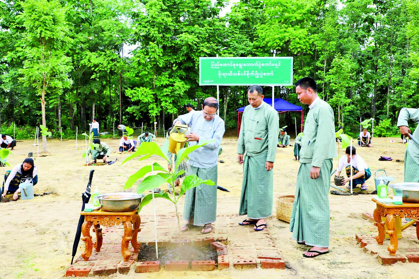 ဦးစွာ ပြည်ထောင်စုရွေးကောက်ပွဲကော်မရှင်ဥက္ကဋ္ဌနှင့် အဖွဲ့ဝင်များက သတ်မှတ်နေရာများ၌ ကျွန်းပင်များကို ဦးဆောင်စိုက်ပျိုးပေးကြပြီး အရာထမ်း၊ အမှုထမ်းများ၏ စုပေါင်းသစ်ပင် စိုက်ပျိုးနေမှုကို လိုက်လံကြည့်ရှုအားပေးကြသည်။