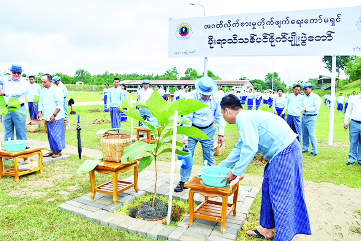 ထို့နောက် ကော်မရှင်ဥက္ကဋ္ဌက ကော်မရှင်ရုံးအဖွဲ့၊ စီမံရေးရာဦးစီးဌာန၊ နိုင်ငံတကာရေးရာနှင့်တားဆီး ကာကွယ်ရေးဦးစီးဌာနနှင့် စုံစမ်းစစ်ဆေးရေးဦးစီးဌာနများမှ တာဝန်ရှိသူများထံ ပျိုးပင်များ လွှဲပြောင်းပေးအပ်ပြီး ကော်မရှင်ဥက္ကဋ္ဌ ဦးဆောင်၍ ပျိုးပင်များ စိုက်ပျိုးကြသည်။
