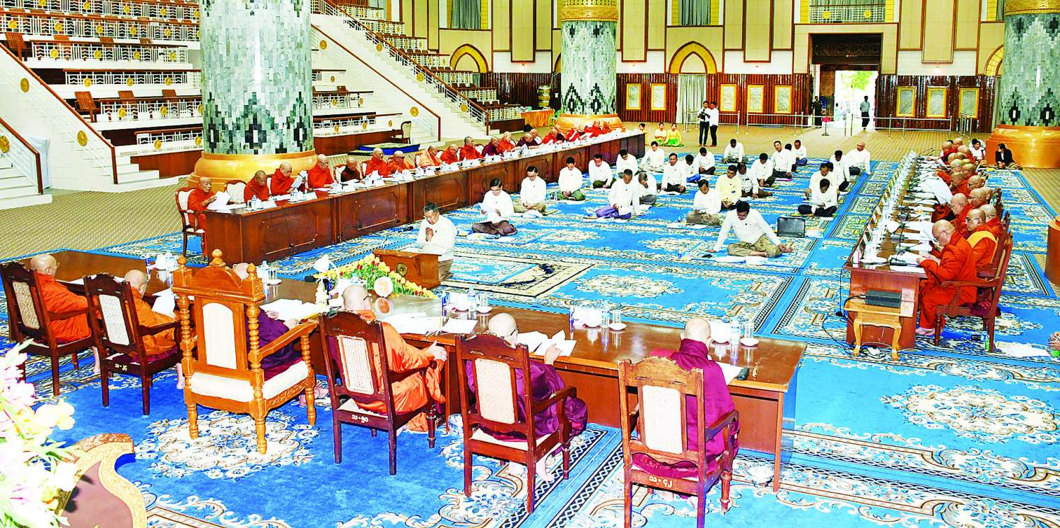 ဆက်လက်၍ သာသနာရေးရာ၊ ဝိနိစ္ဆယရေးရာကိစ္စများကို တင်ပြလျှောက်ထားရာ နိုင်ငံတော် သံဃမဟာနာယကဆရာတော်ကြီးများက ဝေဖန်ဆွေးနွေး ဆုံးဖြတ်တော်မူကြပြီး အစည်းအဝေးကို နံနက် ၉ နာရီခွဲတွင် ရပ်နားသည်။