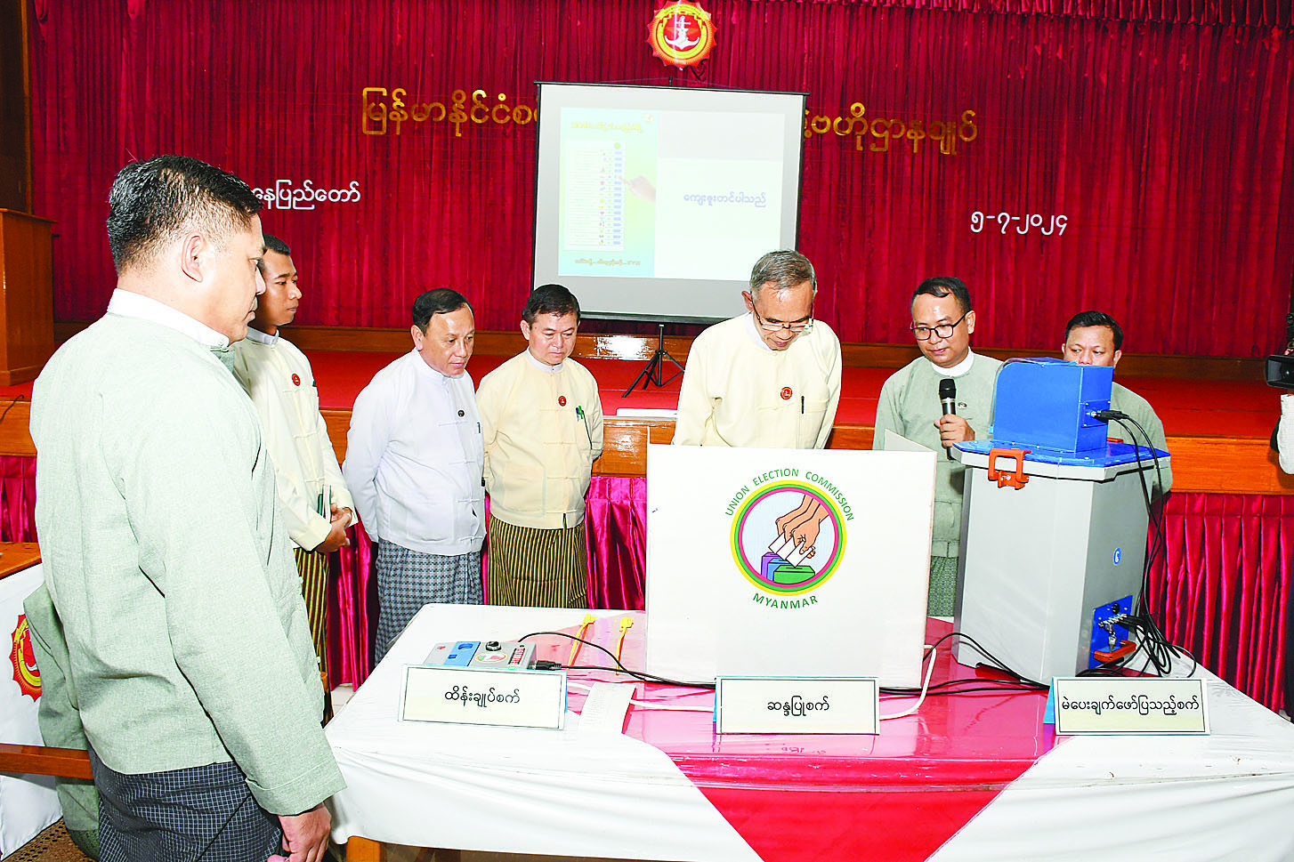 Myanmar Electronic Voting Machine (MEVM) စက် သရုပ်ပြ ရှင်းလင်းဆွေးနွေးခြင်း နှင့်စပ်လျဉ်း၍ MEVM စက်အသုံးပြုမှုအပေါ်တွင် စိတ်ချယုံကြည်စွာ ဆောင်ရွက်နိုင်ရေး၊ စမ်းသပ်မဲပေးခဲ့သည့် မဲဆန္ဒရှင်များအနေဖြင့် ရွေးကောက်ပွဲတွင် မိမိတို့ရွေးချယ် မဲပေးလိုသည့်ပါတီအား လွယ်ကူရှင်းလင်းစွာမဲပေးနိုင်ရေး၊ မဲဆန္ဒရှင်များ စိတ်ချယုံကြည်မှုအပြည့်ဖြင့် ပွင့်လင်းမြင်သာမှုရှိစွာ မဲပေးနိုင်ရေး၊ မဲပေးခြင်းနှင့်စပ်လျဉ်း၍ ကျယ်ကျယ်ပြန့်ပြန့် သိရှိနိုင်ရေးတို့ကို မဲဆန္ဒရှင်အသိပညာပေးလုပ်ငန်းတစ်ရပ်အနေဖြင့် ဆောင်ရွက်လျက်ရှိသည်။