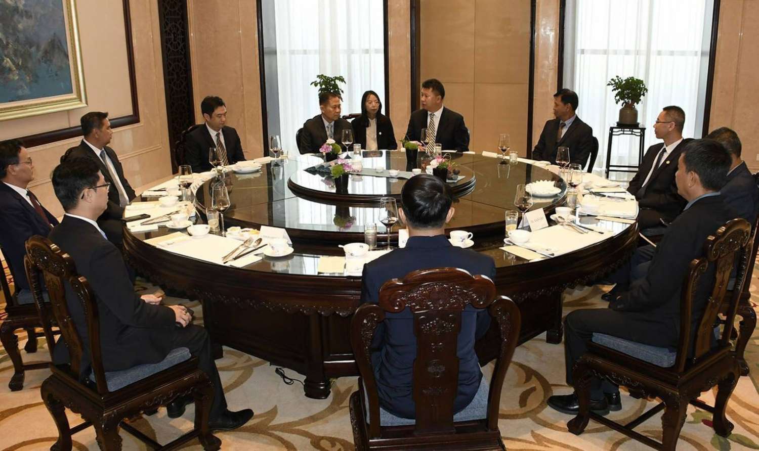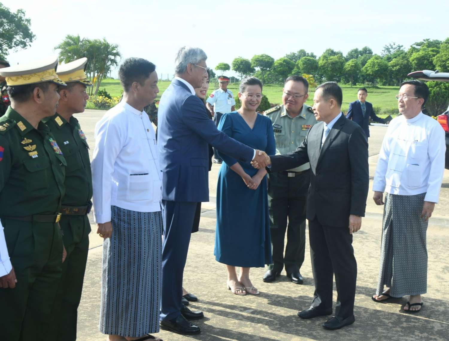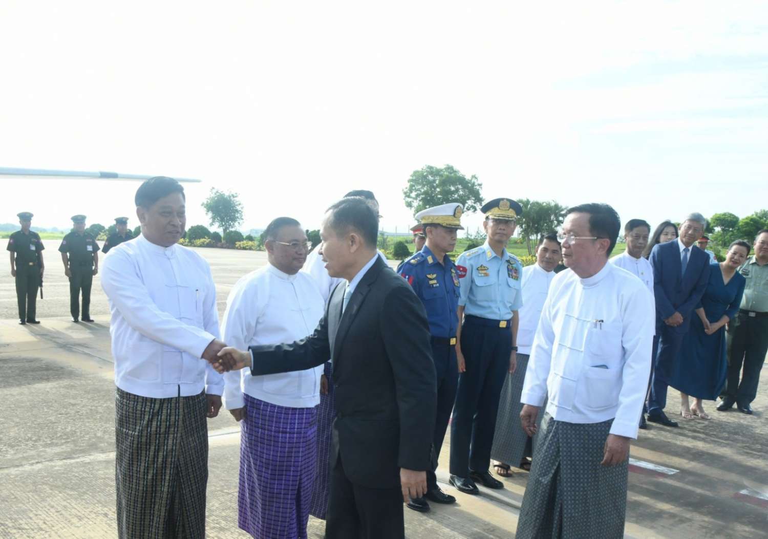 နိုင်ငံတော်စီမံအုပ်ချုပ်ရေးကောင်စီဒုတိယဥက္ကဋ္ဌ ဒုတိယဝန်ကြီးချုပ်ဦးဆောင်သော မြန်မာကိုယ်စားလှယ်အဖွဲ့သည် ကူမင်းမြို့သို့ရောက်ရှိစဉ် ယူနန်ပြည်နယ် ဒုတိယအုပ်ချုပ်ရေးမှူး မစ္စတာဝမ်းဟောင် (Mr.Wang Hao) က အပြည်ပြည်ဆိုင်ရာ လေဆိပ်အထူးဧည့်ခန်းမ၌ လာရောက်တွေ့ဆုံနှုတ်ဆက်သည်။