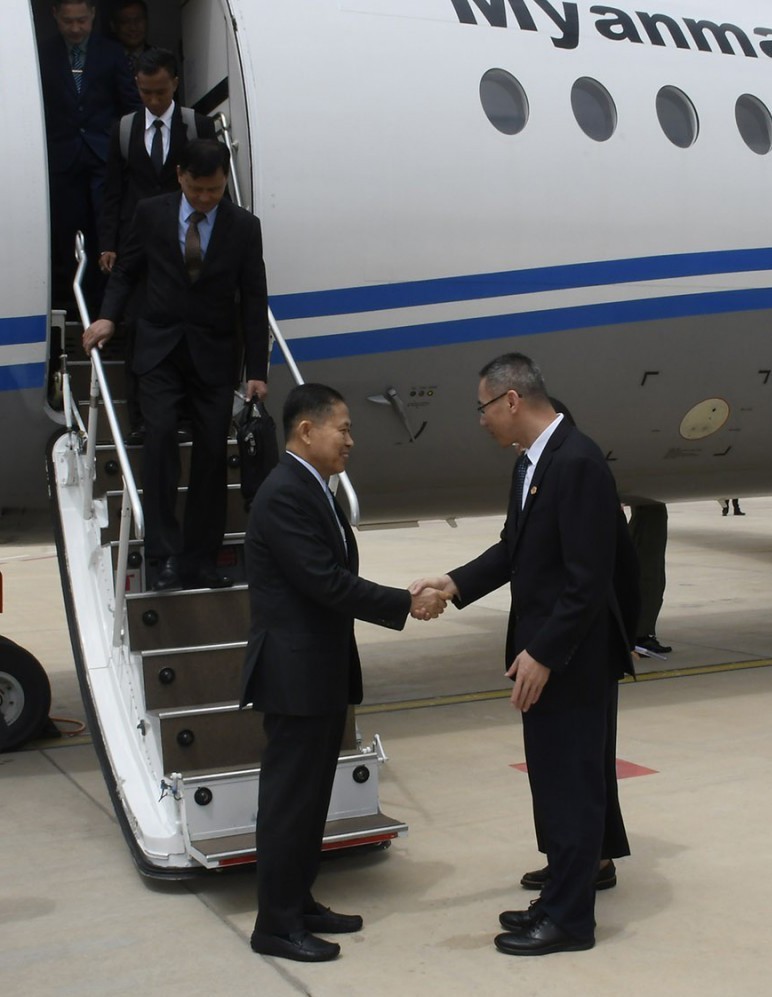 နိုင်ငံတော်စီမံအုပ်ချုပ်ရေးကောင်စီဒုတိယဥက္ကဋ္ဌ ဒုတိယဝန်ကြီးချုပ်ဦးဆောင်သော မြန်မာကိုယ်စားလှယ်အဖွဲ့သည် ဒေသစံတော်ချိန် နံနက် ၁၁ နာရီ ၁၅ မိနစ်တွင် ကူမင်းမြို့သို့ရောက်ရှိရာ ယူနန်ပြည်နယ် ပြည်သူ့အစိုးရနိုင်ငံခြားရေးဝန်ကြီးဌာန ညွှန်ကြားရေးမှူးချုပ် မစ္စတာကျန်းရှစ်ကျင်း (Mr.Zhang Shijin) ၊ ကူမင်းကောင်စစ်ဝန်ချုပ် ဦးသွင်ထက်လင်းနှင့်တာဝန်ရှိသူများက ကူမင်းလေဆိပ်၌ ကြိုဆိုနှုတ်ဆက်ကြသည်။