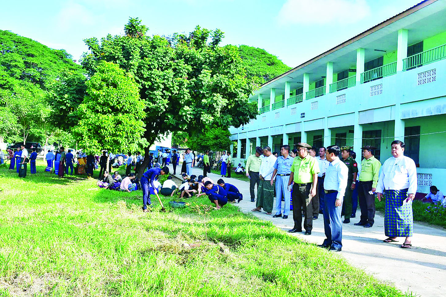နေပြည်တော်ကောင်စီဥက္ကဋ္ဌ ဦးသန်းထွန်းဦးသည် တာဝန်ရှိသူများနှင့်အတူ ယနေ့နံနက်ပိုင်းတွင် ပျဉ်းမနားမြို့နယ် အမှတ် (၁) အခြေခံပညာနှင့် စက်မှု၊ စိုက်ပျိုး၊ မွေးမြူရေး အထက်တန်းကျောင်းသို့ ရောက်ရှိပြီး စုပေါင်းသန့်ရှင်းရေးဆောင်ရွက်နေမှုနှင့် စက်မှု၊ စိုက်ပျိုး၊ မွေးမြူရေး ဘာသာရပ်သင်ကြားရေး ကျောင်းဆောင်များကို ကြည့်ရှုစစ်ဆေးကာ စာကြည့်တိုက်အတွက် ငွေပဒေသာပင်နှင့်စာအုပ်များကို ပေးအပ်လှူဒါန်းသည်။