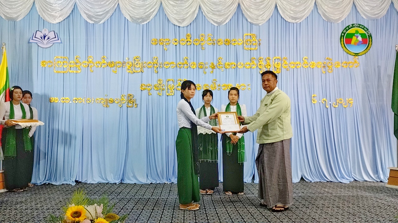 ထို့နောက် ကျပန်း၊ စာစီစာကုံးနှင့် ကဗျာရွတ်ပြိုင်ပွဲများတွင် ဆုရရှိသူများအား ခရိုင်စီမံအုပ်ချုပ်ရေးအဖွဲ့ဥက္ကဋ္ဌ ဦးအောင်နိုင်ဦး၊ ပြန်ကြားရေးနှင့်ပြည်သူ့ဆက်ဆံရေးဦးစီးဌာန တိုင်းဒေသကြီးဦးစီးမှူး ဒေါ်ယဉ်ဆွေဝင်းနှင့် တာဝန်ရှိသူများက ဆုများပေးအပ်ချီးမြှင့်ကာ၊ ကျောင်းသား၊ ကျောင်းသူလေးများက တေးသီချင်းအကများဖြင့် ဖျော်ဖြေခဲ့ကြသည်။