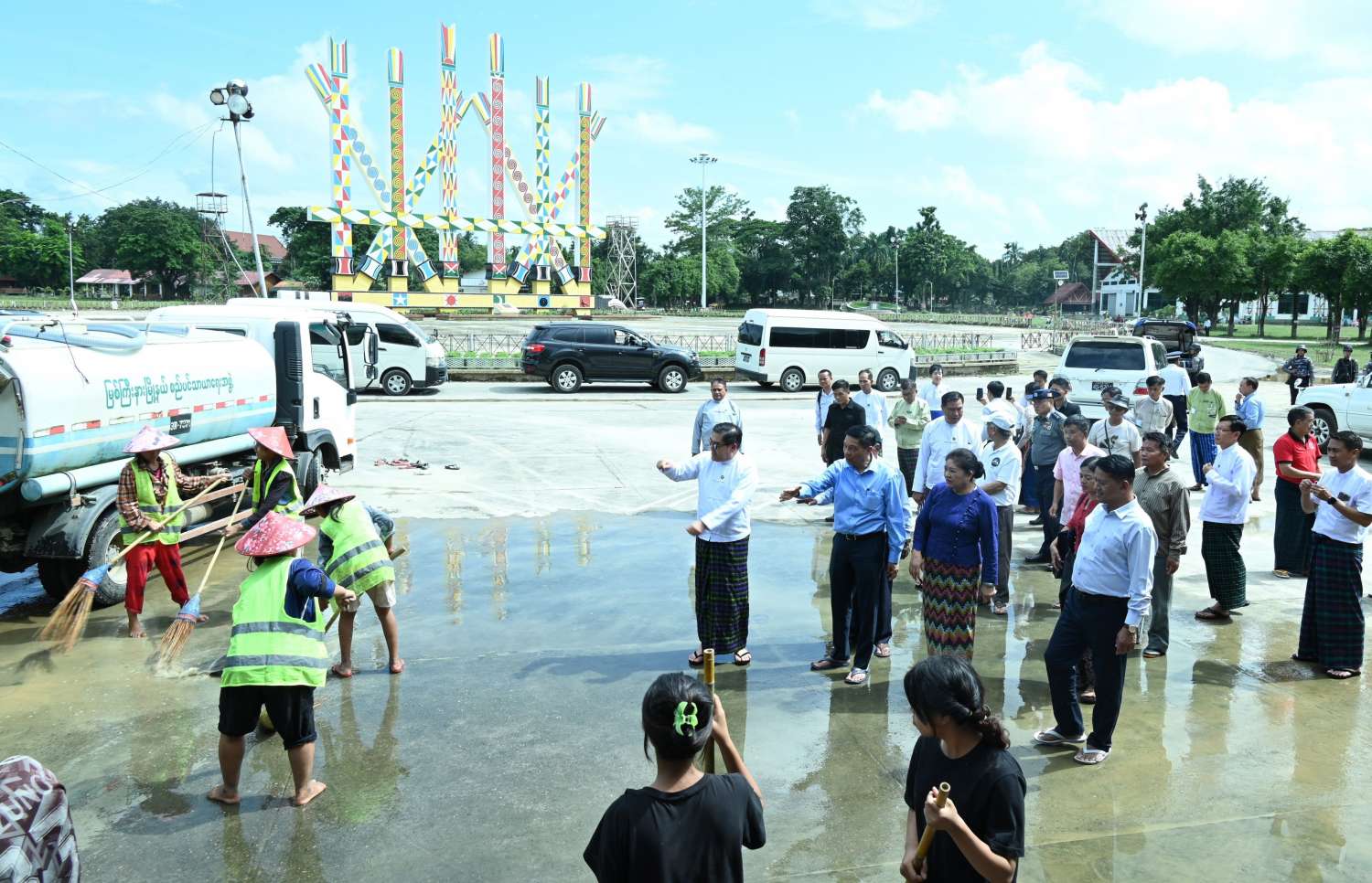 ယင်းနောက် နိုင်ငံတော်ကောင်စီဝင်၊ ပြည်ထောင်စုဝန်ကြီး၊ ပြည်နယ်ဝန်ကြီးချုပ်နှင့် အဖွဲ့သည် ရေကြီးရေလျှံမှုဖြစ်ပွားခဲ့ပြီး သန့်ရှင်းရေးလုပ်ငန်းများ ဆောင်ရွက်လျှက်ရှိသည့် မြစ်ကြီးနားမြို့ စီတာပူရပ်ကွက် မနောကွင်းနှင့် မနောအိမ်တော်တို့သို့ သွားရောက်ကာ သန့်ရှင်းရေး လုပ်ငန်းများ ဆောင်ရွက်နေကြသည့် ဝန်ထမ်းများအား တွေ့ဆုံ၍ အားပေးစကား ပြောကြားခဲ့ကြ ပါသည်။