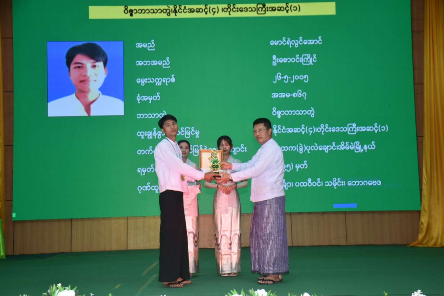 ထို့နောက် ၂၀၂၄ ခုနှစ်၊ တက္ကသိုလ်ဝင်စာမေးပွဲတွင် အောင်ချက်အကောင်းဆုံး(ပထမ၊ ဒုတိယနှင့် တတိယ)ဆုရရှိသည့် ခရိုင်နှင့် မြို့နယ်များ၊ အထက်တန်းကျောင်းအဆင့်၊ အထက်တန်းကျောင်း(ခွဲ)အဆင့်နှင့် ကိုယ်ပိုင်အထက်တန်းကျောင်းအဆင့်(ပထမ၊ ဒုတိယနှင့် တတိယ)ဆုရရှိသည့်ကျောင်းများ၊ ဝိဇ္ဇာဘာသာတွဲတွင် နိုင်ငံအဆင့်(၄)၊ တိုင်းဒေသကြီးအဆင့် (၁)ရရှိသူ၊ နိုင်ငံအဆင့်(၅)၊ တိုင်းဒေသကြီးအဆင့်(၂)ရရှိသူ၊ နိုင်ငံအဆင့်(၇)၊ တိုင်းဒေသကြီးအဆင့် (၃)ရရှိသူနှင့် နိုင်ငံအဆင့်(၈)၊ တိုင်းဒေသကြီးအဆင့် (၄) ရရှိသူများအား တိုင်းဒေသကြီးဝန်ကြီးချုပ်ကလည်းကောင်း၊ ၂၀၂၄ ခုနှစ်၊ တက္ကသိုလ်ဝင်စာမေးပွဲသိပ္ပံဘာသာတွဲတွင် တိုင်းဒေသကြီးအဆင့် ထူးချွန်စွာအောင်မြင်ခဲ့ကြသော ကျောင်းသား၊ ကျောင်းသူများအား တိုင်းဒေသကြီးအစိုးရအဖွဲ့ဝန်ကြီးချုပ်၏ဇနီးကလည်းကောင်း၊ ဝိပ္ပံဘာသာတွဲတွင် တိုင်းဒေသကြီးအဆင့် ထူးချွန်စွာ အောင်မြင်ခဲ့ကြသူများအား တိုင်းဒေသကြီးတရားသူကြီးချုပ်ကလည်းကောင်း၊ ဝိဇ္ဇာဘာသာတွဲတွင် တိုင်းဒေသကြီးအဆင့် ထူးချွန်စွာအောင်မြင်ခဲ့သူများနှင့်(၆)ဘာသာဂုဏ်ထူးရှင်များအား လုံခြုံရေးနှင့်နယ်စပ်ရေးရာဝန်ကြီးကလည်းကောင်း၊ ၂၀၂၄ ခုနှစ်၊ တက္ကသိုလ်ဝင်စာမေးပွဲတွင် (၆)ဘာသာဂုဏ်ထူးရှင်များ၊ (၅)ဘာသာဂုဏ်ထူးရှင်များနှင့် (၄)ဘာသာဂုဏ်ထူးရှင်များကို တာဝန်ရှိသူအသီးသီးကလည်းကောင်း ဂုဏ်ပြုဆုငွေနှင့် ဆုများချီးမြှင့်ခဲ့ကြသည်။