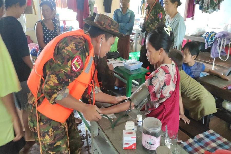 ထိုသို့ဆောင်ရွက်ပေးလျက်ရှိရာ ယနေ့တွင် နယ်မြေခံတပ်မတော်သားများနှင့် ဌာနဆိုင်ရာတာဝန်ရှိသူများက ပေါမိုင်းရပ်ကွက်ရှိ သာသနာဟိတ(ဗဟိုကျောင်း)၊ အခြေခံမူလတန်းကျောင်း(ပေါမိုင်း)တို့တွင် တိမ်းရှောင်နေသည့် ရေဘေးသင့်ပြည်သူများနှင့် မြသိန်းတန်ဘုရားကုန်း၊ တပ်ဦးနန္ဒဝန်ဘုန်းတော်ကြီးကျောင်း၊ ထေရဝါဒဗုဒ္ဓသာသနာပြုကျောင်းနှင့် အခြေခံပညာအလယ်တန်းကျောင်း(ဇီးဖြူကုန်း)တို့၌ ရွှေ့ပြောင်းနေထိုင်နေသည့် ရေဘေးသင့်ပြည်သူများအား လိုအပ်သည့်ကျန်းမာရေးစောင့်ရှောက်မှုလုပ်ငန်းများနှင့် စားသောက်ဖွယ်ရာများ ထောက်ပံ့ပေးအပ်လျက်ရှိကြောင်း သတင်းရရှိသည်။