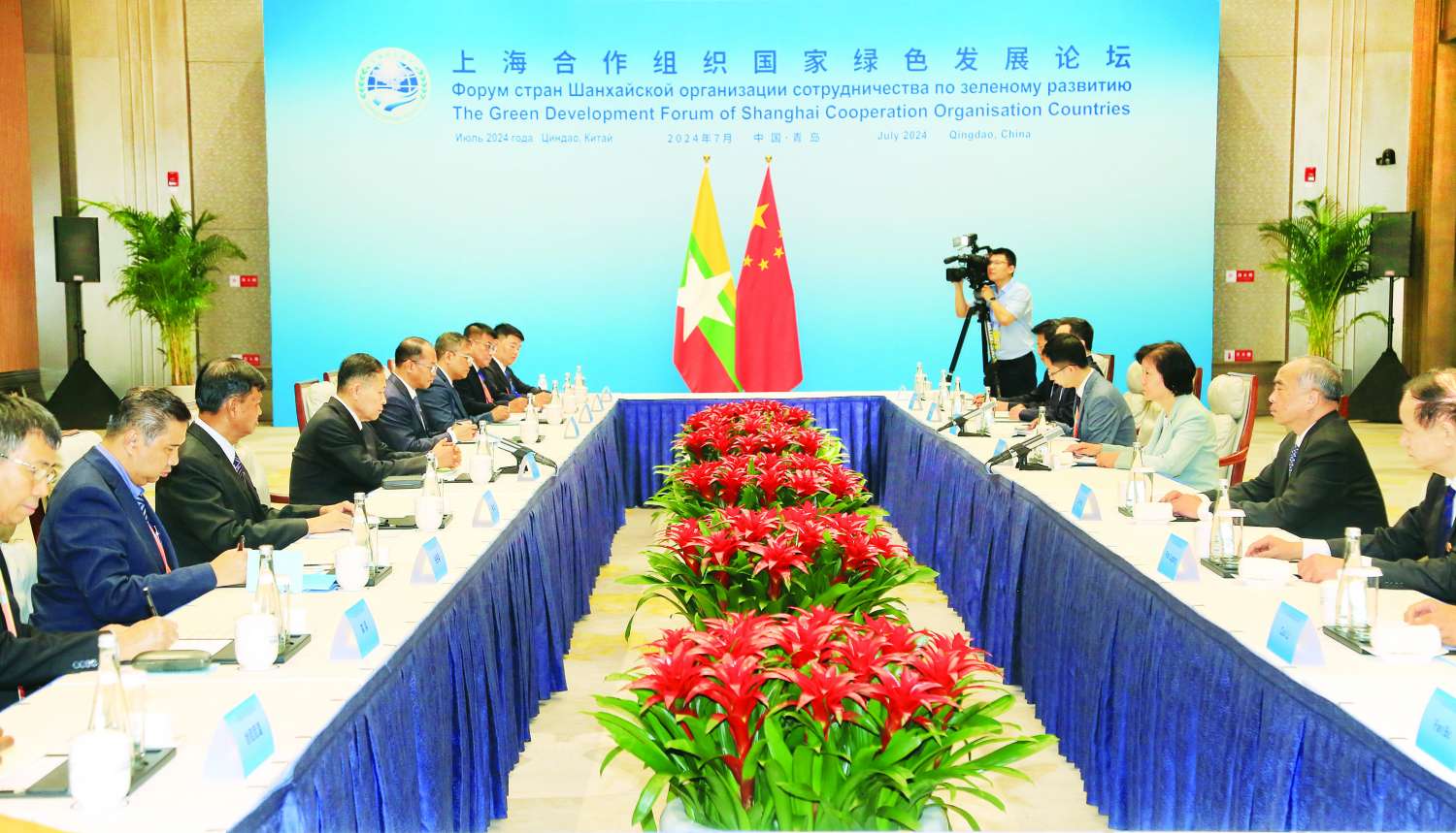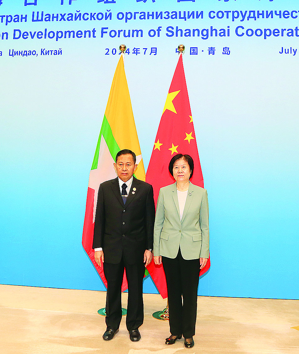 ရှန်ဟိုင်းပူးပေါင်းဆောင်ရွက်ရေးအဖွဲ့(SCO)၏ စိမ်းလန်းသောဖွံ့ဖြိုးမှုဖိုရမ်သို့ တက်ရောက်ရန် ချင်းတောင်မြို့၌ ရောက်ရှိနေသည့် နိုင်ငံတော်စီမံအုပ်ချုပ်ရေးကောင်စီ ဒုတိယဥက္ကဋ္ဌ ဒုတိယဝန်ကြီးချုပ် ဒုတိယဗိုလ်ချုပ်မှူးကြီး စိုးဝင်းသည် ယနေ့ ဒေသစံတော်ချိန် ညနေ ၅ နာရီတွင် Qingdao International Conference Center ရှိ Anren ခန်းမ၌ ကျင်းပသည့် မြန်မာ-တရုတ်နှစ်နိုင်ငံ တွေ့ဆုံဆွေးနွေးပွဲအခမ်းအနားသို့ တက်ရောက်သည်။