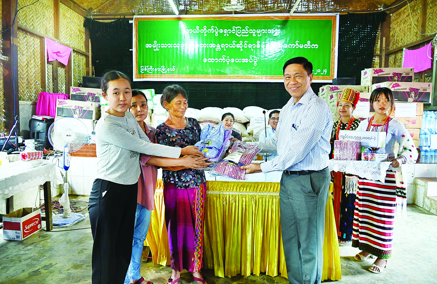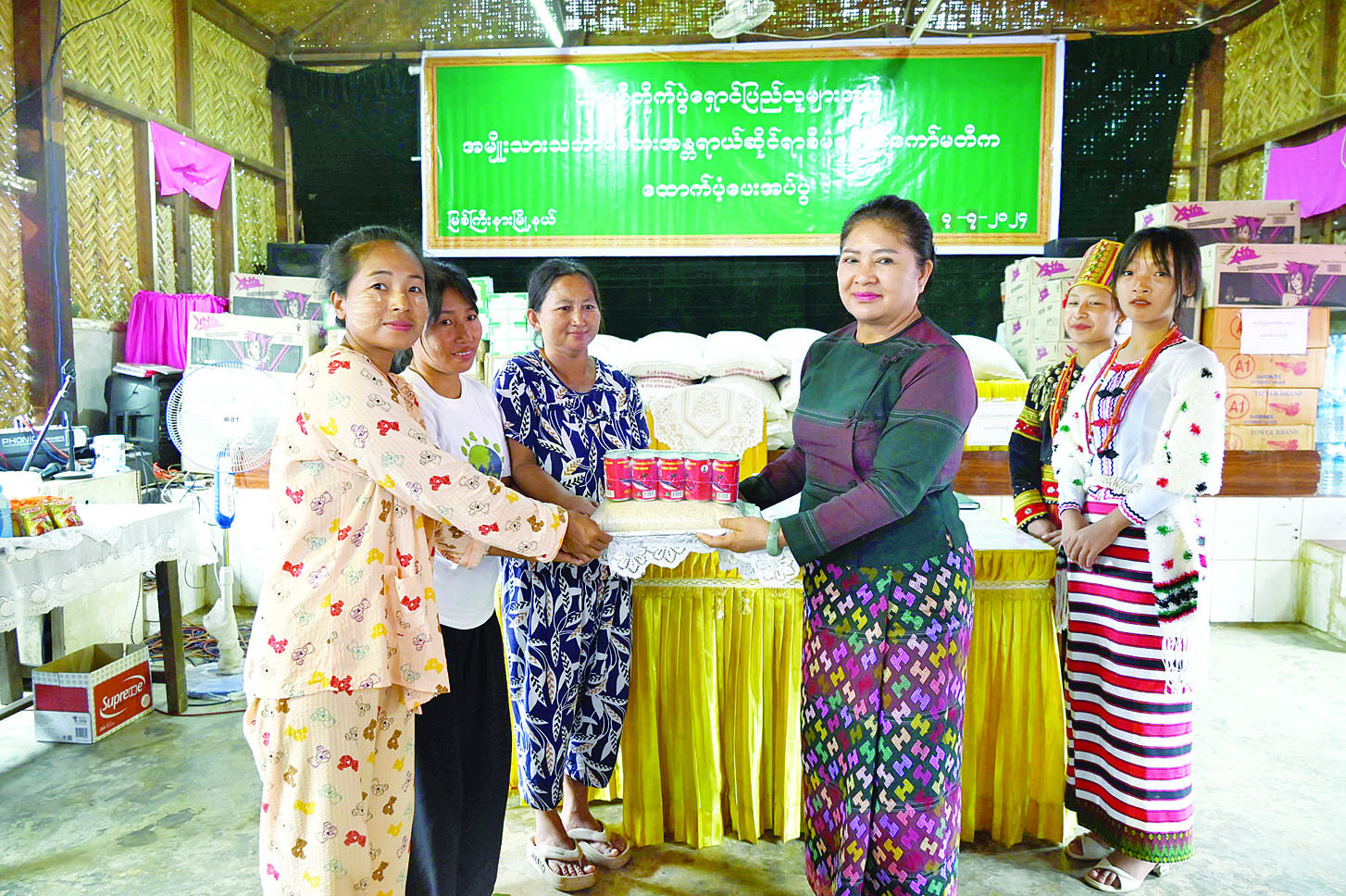 နိုင်ငံတော်စီမံအုပ်ချုပ်ရေးကောင်စီအဖွဲ့ဝင် ဒေါ်ဒွဲဘူသည် လူမှုဝန်ထမ်း၊ ကယ်ဆယ်ရေးနှင့်ပြန်လည်နေရာချထားရေးဝန်ကြီးဌာန ပြည်ထောင်စုဝန်ကြီး ဒေါက်တာစိုးဝင်း၊ ကချင်ပြည်နယ်ဝန်ကြီးချုပ် ဦးခက်ထိန်နန်၊ တာဝန်ရှိသူများနှင့်အတူ ယနေ့မွန်းလွဲပိုင်းတွင် မြစ်ကြီးနားမြို့ နောင်နန်း(၈)မိုင် AG အသင်းတော် ၌ ဖွင့်လှစ်ထားသည့် နေရပ်စွန့်ခွာစခန်းသို့ ရောက်ရှိပြီး နိုင်ငံတော်အကြီးအကဲက လှူဒါန်းသည့် ကျား/မ ရှပ်အင်္ကျီများ၊ အမျိုးသားသဘာဝဘေးစီမံခန့်ခွဲမှုကော်မတီနှင့် ကချင်ပြည်နယ်အစိုးရအဖွဲ့တို့က ထောက်ပံ့သည့် ငွေကျပ် ၉၄၃၀၀၀၀ တန်ဖိုးရှိ ဆန်အိတ် ၅၀၊ ငါးသေတ္တာလေးဖာ၊ ခေါက်ဆွဲ ခြောက် ၂၄၃ ဖာ၊ ဆီ ၁၀ ပိဿာပုံး ၂၀ နှင့် ရေသန့်ဘူးများ စသည့် အခြေခံစားသောက်ကုန်များနှင့် လူမှုဝန်ထမ်း၊ ကယ်ဆယ်ရေးနှင့်ပြန်လည်နေရာချထားရေးဝန်ကြီးဌာနက ထောက်ပံ့သည့် ငွေကျပ် ၂၇၆၈၉၀၀ဝ တန်ဖိုးရှိ သွားတိုက်ဆေး၊ သွားတိုက်တံ၊ ဆပ်ပြာ စသည့် ထောက်ပံ့ရေးပစ္စည်းများကို ပေးအပ်သည်။