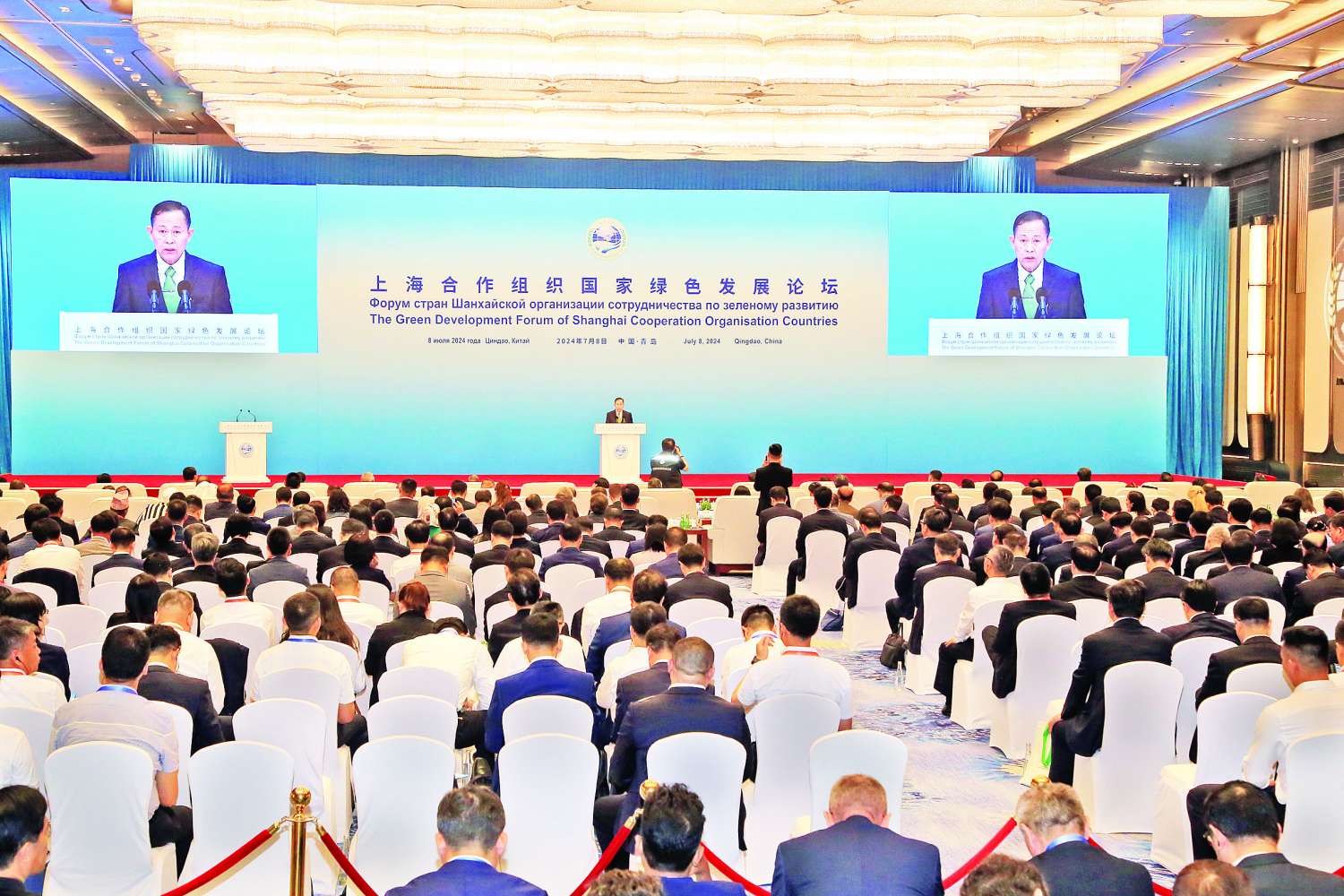 စိမ်းလန်းသောဖွံ့ဖြိုးမှုဖိုရမ် ဖွင့်ပွဲအခမ်းအနားသို့ အဖွဲ့ဝင်နိုင်ငံများဖြစ်သည့် ကာဇက်စတန်နိုင်ငံ၊ တရုတ်နိုင်ငံ၊ ကာဂျီစတန်နိုင်ငံ၊ ရုရှားနိုင်ငံ၊ တာဂျစ်ကစ္စတန်နိုင်ငံနှင့် ဥဇဘက်ကစ္စတန်နိုင်ငံ၊ အန္ဒိယနိုင်ငံ၊ ပါကစ္စတန်နိုင်ငံနှင့် အီရန်နိုင်ငံတို့မှ ကိုယ်စားလှယ်များ၊ လေ့လာသူနိုင်ငံများဖြစ်သည့် အာဖဂန်နစ္စတန်နိုင်ငံ၊ ဘယ်လာရုစ်နိုင်ငံနှင့် မွန်ဂိုလီးယားနိုင်ငံတို့မှ ကိုယ်စားလှယ်များ၊ ဆွေးနွေးဖက်နိုင်ငံများဖြစ်သည့် သီရိလင်္ကာနိုင်ငံ၊ တူကီရဲနိုင်ငံ၊ ကမ္ဘောဒီယားနိုင်ငံ၊ အဇာဘိုင်ဂျန်နိုင်ငံ၊ နီပေါနိုင်ငံ၊ အာမေးနီးယားနိုင်ငံ၊ အီဂျစ်နိုင်ငံ၊ ကာတာနိုင်ငံ၊ ဆော်ဒီအာရေဗျနိုင်ငံ၊ ကူဝိတ်နိုင်ငံ၊ မော်လ်ဒိုက်ဗ်နိုင်ငံ၊ ယူအေအီးနိုင်ငံနှင့် ဘာရိန်းနိုင်ငံတို့မှ ကိုယ်စားလှယ်များ၊ ပညာရှင်များနှင့် တာဝန်ရှိသူများ တက်ရောက်ကြသည်။