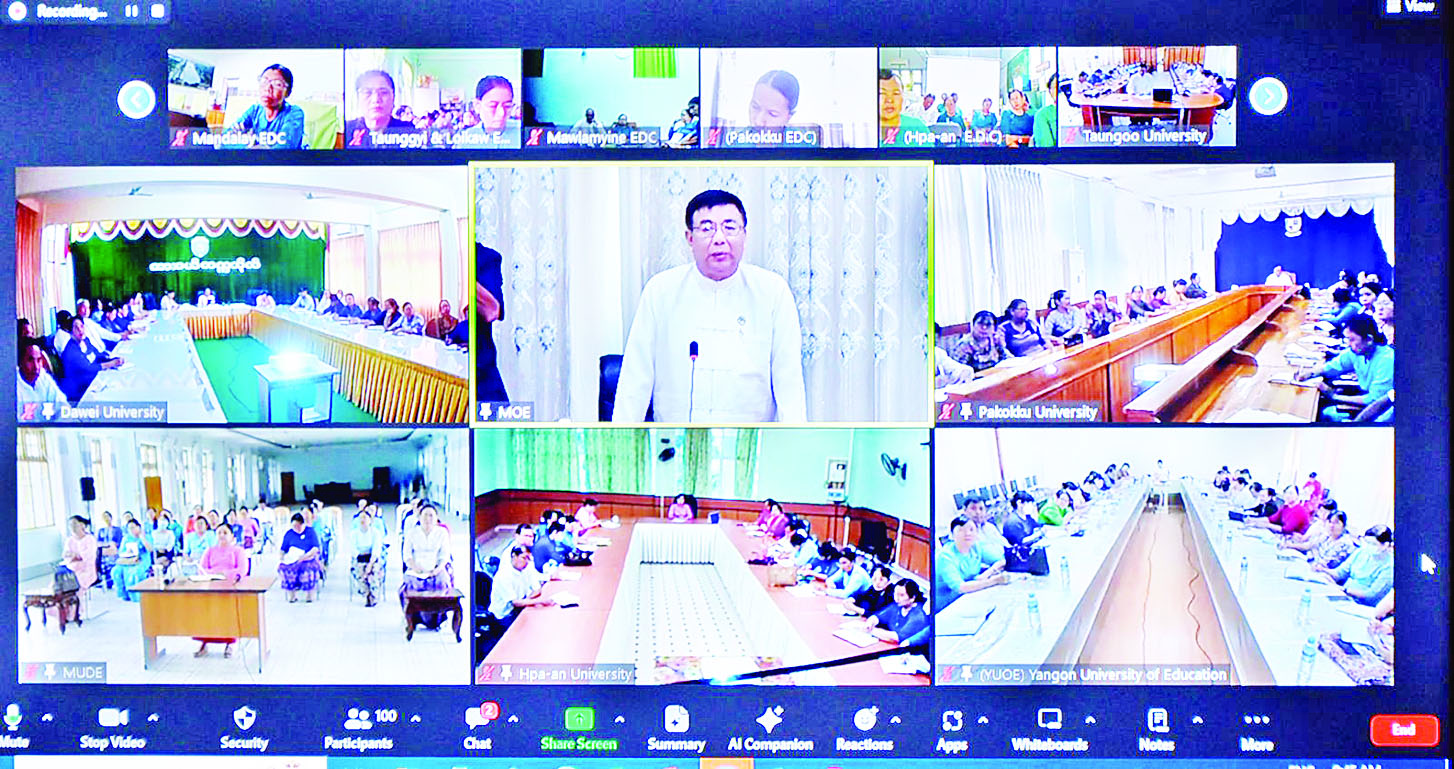 ပညာရေးဝန်ကြီးဌာန ပြည်ထောင်စုဝန်ကြီး ဒေါက်တာညွန့်ဖေသည် ယနေ့နံနက်ပိုင်းတွင် တက္ကသိုလ်၊ ဒီဂရီကောလိပ်၊ ကောလိပ်များမှ ပါမောက္ခချုပ်များ၊ ကျောင်းအုပ်ကြီးများ၊ တိုင်းဒေသကြီး/ပြည်နယ် ပညာရေးမှူးများကို နေပြည်တော်ရှိပညာရေးဝန်ကြီးဌာန အစည်းအဝေးခန်းမမှ အွန်လိုင်းဖြင့် တွေ့ဆုံသည်။