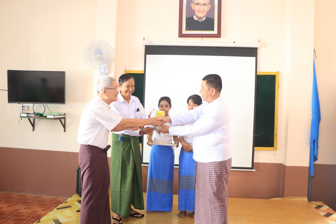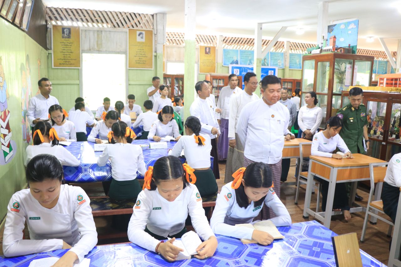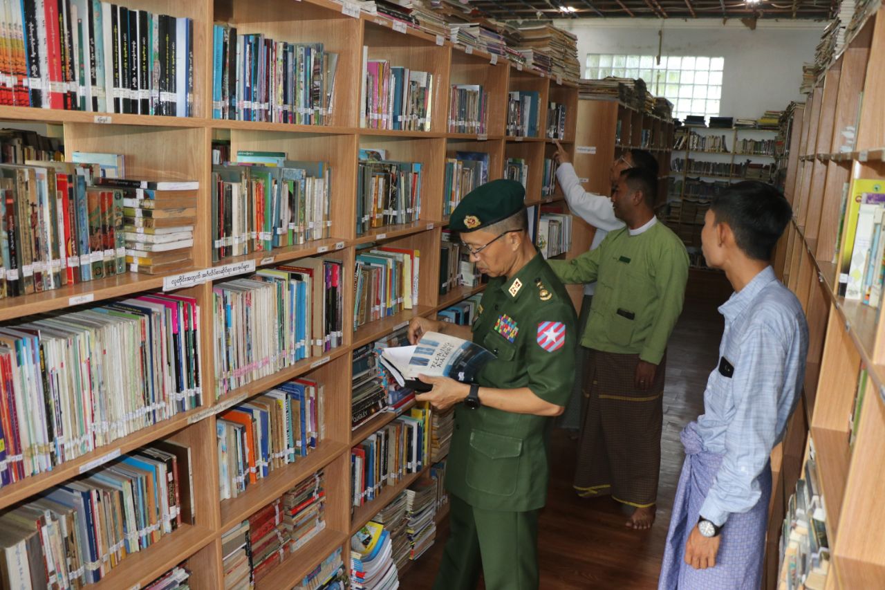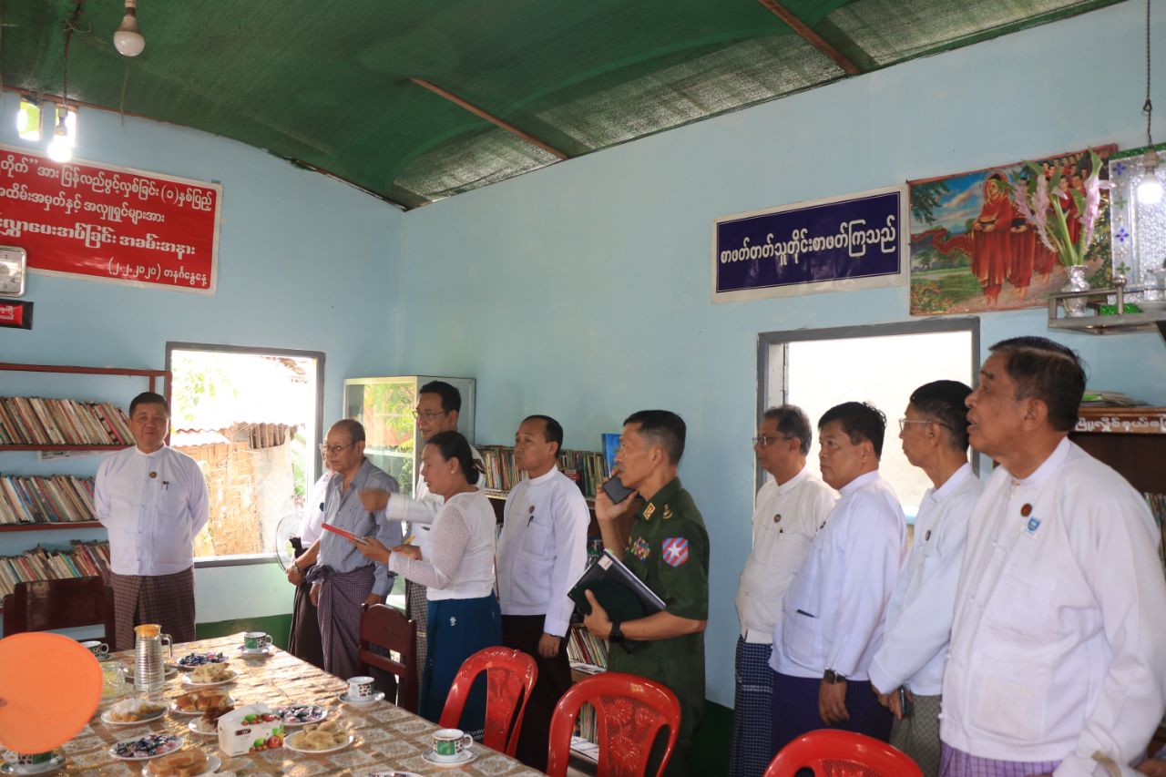 ထို့နောက် အမှတ်(၄)အခြေခံပညာအထက်တန်းကျောင်း သုတရတနာစာကြည့်တိုက်အား လှည့်လည်ကြည့်ရှု၍ အားလပ်ချိန်များတွင် အချိန်ကိုအကျိုးရှိစွာ အသုံးချတတ်စေရန်၊ တစ်ဦးနှင့် တစ်ဦးချစ်ခင်ရင်းနှီးမှု ပိုမိုရရှိစေရန်၊ လူအများနှင့် ပြောဆိုဆက်ဆံရာတွင် ပြောရဲဆိုရဲသည့် အလေ့အကျင့်များ ရရှိလာစေရန်၊စာဖတ်သည့် အလေ့အကျင့်ကောင်းများရရှိနိုင်စေရန်၊ အသိပညာဗဟုသုတများ တိုးပွားရရှိလာစေရန်ရည်ရွယ်ကျင်းပပြုလုပ်သည့် ကျောင်းသား၊ ကျောင်းသူလေးများ၏ စာပေစကားဝိုင်းဆွေးနွေးနေမှုအား ကြည့်ရှုအားပေးကာ ကျောင်းစာကြည့်တိုက်အတွက် စာအုပ်စာစောင်များ ပေးအပ်လှူဒါန်းခဲ့ကြောင်း သိရှိရသည်။