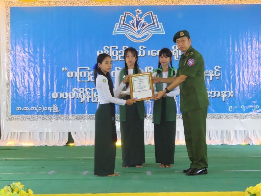 အခမ်းအနားတွင် သုတ၊ ရသစာအုပ်၊ စာစောင်များ ပေးအပ်လှူဒါန်းခြင်း၊ ကဗျာရွတ်ဆိုပြိုင်ပွဲ၊ ပန်းချီပြိုင်ပွဲတို့တွင် ဆုရရှိကြသူများအား ဆုများပေးအပ်ချီးမြှင့်ခြင်း၊ ကျောင်းသား/သူများက "ဇာတိမာန်"သီချင်းဖြင့် ဂုဏ်ပြုသီဆို ဖျော်ဖြေခြင်းနှင့် မြို့နယ်ပြန်ကြားရေးနှင့်ပြည်သူ့ဆက်ဆံရေးဦးစီးဌာနမှ ခင်းကျင်းပြသထားသော စာအုပ်၊ စာစောင်များ၊ ဆုရကျောင်းသား/သူများ၏ ပြိုင်ပွဲဝင် ပန်းချီကားများ၊ ပြိုင်ပွဲဝင် ကျောင်းသား/သူများ၏ ပန်းချီကားများအား လှည့်လည်ကြည့်ရှုခြင်းများ ဆောင်ရွက်ခဲ့ကြကြောင်း သိရှိရသည်။