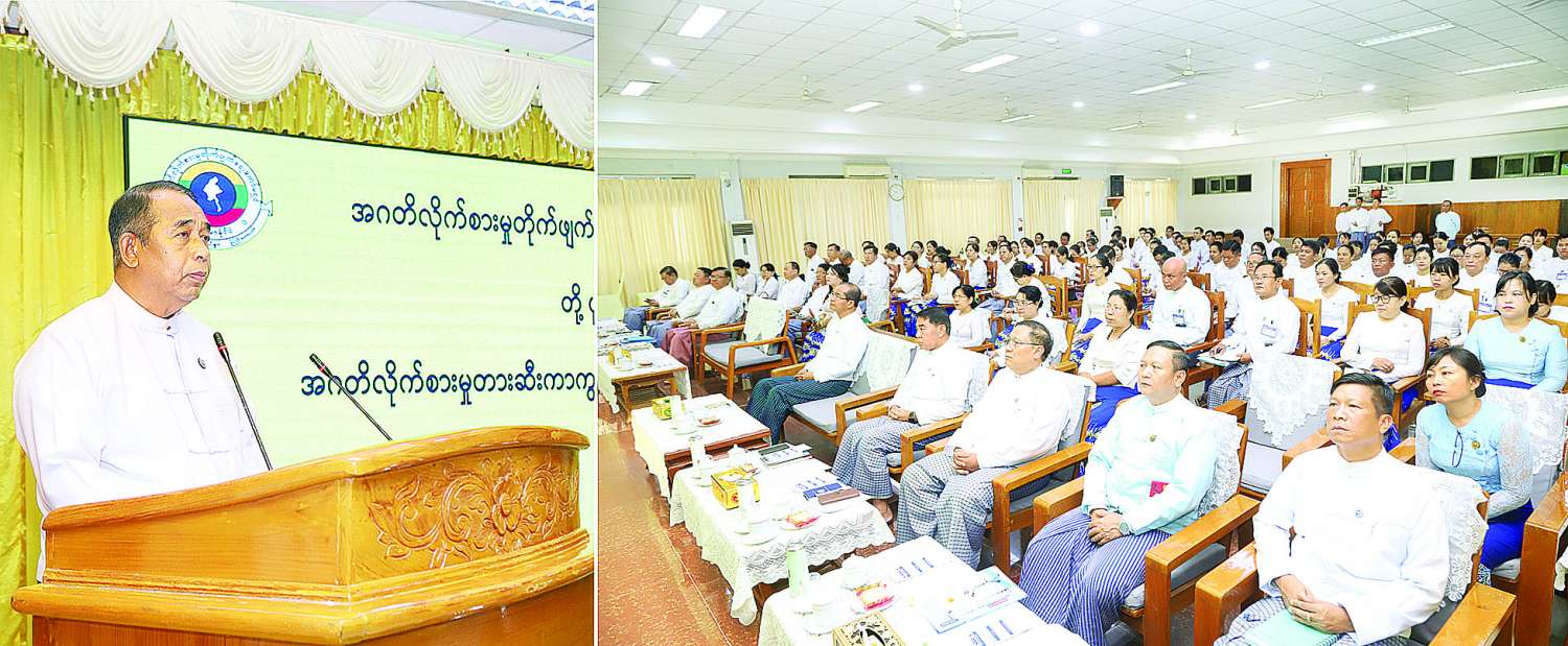 ဦးစွာ ပြည်ထောင်စုဝန်ကြီးက အဂတိလိုက်စားမှုသည် နယ်ပယ်အသီးသီးတွင် ပုံစံအမျိုးမျိုးဖြင့် ဖြစ်ပေါ်နိုင်ပြီး အဂတိလိုက်စားမှုကိုကျူးလွန်ပါက အဂတိလိုက်စားမှုတိုက်ဖျက်ရေးဥပဒေနှင့် အရေးယူခံရမည့်အပြင် ပတ်ဝန်းကျင်အသိုင်းအဝိုင်း၌ မိမိ၏ဂုဏ်သိက္ခာ ထိခိုက်ကျဆင်းစေမည်ဖြစ်သည့်အတွက် နိုင်ငံ့ဝန်ထမ်းများ သိရှိရှောင်ကြဉ်ရန် လိုအပ်ကြောင်း၊ ကာကွယ်ခြင်းသည် ကုသခြင်းထက် ကောင်းသည် ဆိုသည့်စကားနှင့်အညီ အဂတိလိုက်စားမှုများ ပေါ်ပေါက်မှ စုံစမ်းစစ်ဆေးအရေးယူခြင်းထက် အဂတိလိုက်စားမှုများ မဖြစ်မီကတည်းက ကြိုတင်ကာကွယ်ဆောင်ရွက်ရမည်ဖြစ်ကြောင်း၊ အလုပ်သမားဝန်ကြီးဌာနသည် အလုပ်သမားထု၏ လူမှုစီးပွားဖွံ့ဖြိုးတိုးတက်ရေးအတွက် ဝန်ဆောင်မှုလုပ်ငန်းများ ဆောင်ရွက်ပေးနေသည့်ဌာနဖြစ်ပြီး နိုင်ငံဖွံ့ဖြိုးတိုးတက်ရေးအတွက် တစ်ထောင့်တစ်နေရာမှ တာဝန်ယူဆောင်ရွက်လျက်ရှိသည့် ဌာနဖြစ်ပါကြောင်း၊ ဝန်ကြီးဌာန၏ မူဝါဒ၊ ရည်မှန်းချက်များ အကောင်အထည်ဖော်ရာတွင် ဖြောင့်မတ်တည်ကြည်မှု၊ တာဝန်ယူမှု၊ တာဝန်ခံမှုရှိကြရန်နှင့် ပွင့်လင်းမြင်သာစွာ ဆောင်ရွက်နိုင်ရန် လိုအပ်ကြောင်း။