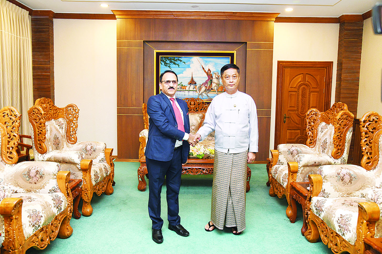 နိုင်ငံခြားရေးဝန်ကြီးဌာန ဒုတိယဝန်ကြီး ဦးလွင်ဦးသည် တာဝန်ပြီးဆုံး၍ ပြန်လည်ထွက်ခွာမည့် ရခိုင်ပြည်နယ်စစ်တွေမြို့အခြေစိုက် အိန္ဒိယသမ္မတနိုင်ငံ ကောင်စစ်ဝန်ချုပ်ရုံးမှ ကောင်စစ်ဝန်ချုပ် မစ္စတာဘီဘေကာနန္ဒာ ဘတ္တာမစ်ရှရာကို ယနေ့နံနက် ၁၁ နာရီတွင် နေပြည်တော်ရှိ နိုင်ငံခြားရေးဝန်ကြီးဌာန၌ လက်ခံတွေ့ဆုံသည်။