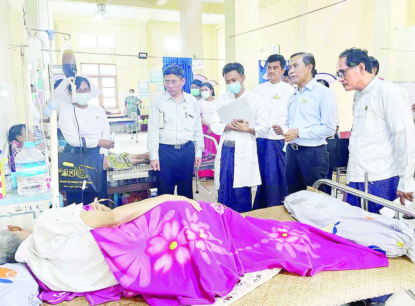 ကျန်းမာရေးဝန်ကြီးဌာန ဒုတိယဝန်ကြီး ပါမောက္ခဒေါက်တာအေးထွန်းသည် ကုသရေးဦးစီးဌာန ဒုတိယညွှန်ကြားရေးမှူးချုပ်၊ ဧရာဝတီတိုင်းဒေသကြီး ကုသရေးဦးစီးဌာနမှူးတို့နှင့်အတူ ဇူလိုင် ၇ ရက် နံနက်ပိုင်းက ဧရာဝတီတိုင်းဒေသကြီးရှိ ပြည်သူ့ဆေးရုံ-ပန်းတနော်မြို့သို့ရောက်ရှိပြီး ပြည်သူလူထုအား ကျန်းမာရေးစောင့်ရှောက်ပေးနေမှုများနှင့် ဆေးရုံအဆောက်အဦများ၏ အခြေအနေကို ကြည့်ရှုစစ်ဆေးကာ လိုအပ်ချက်များကို ဆွေးနွေးမှာကြားသည်။