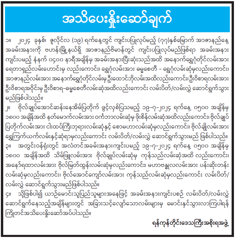 ဝန်ကြီးဌာန ကြေညာချက်များ