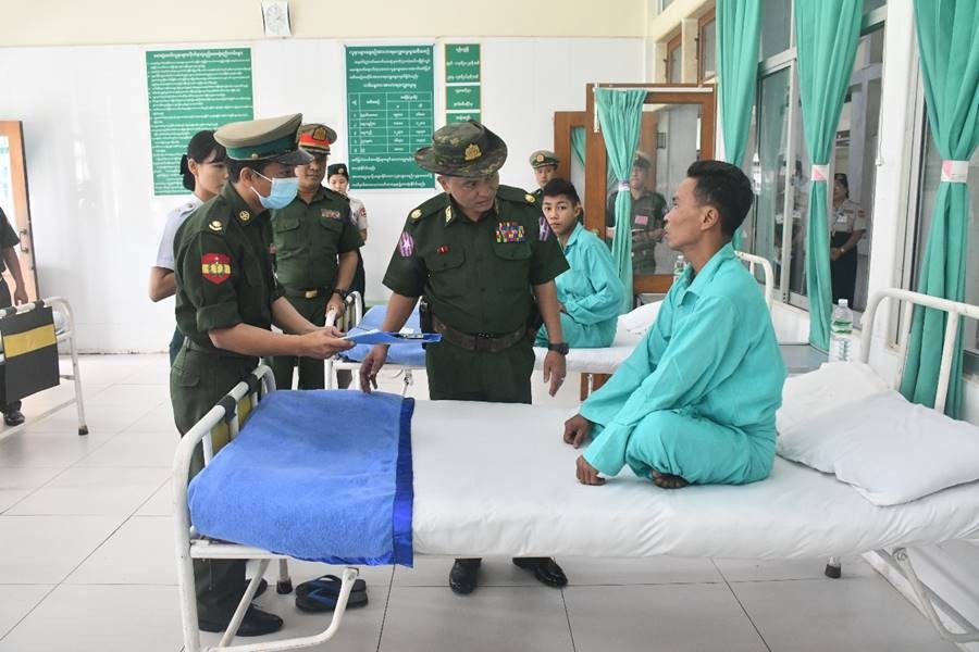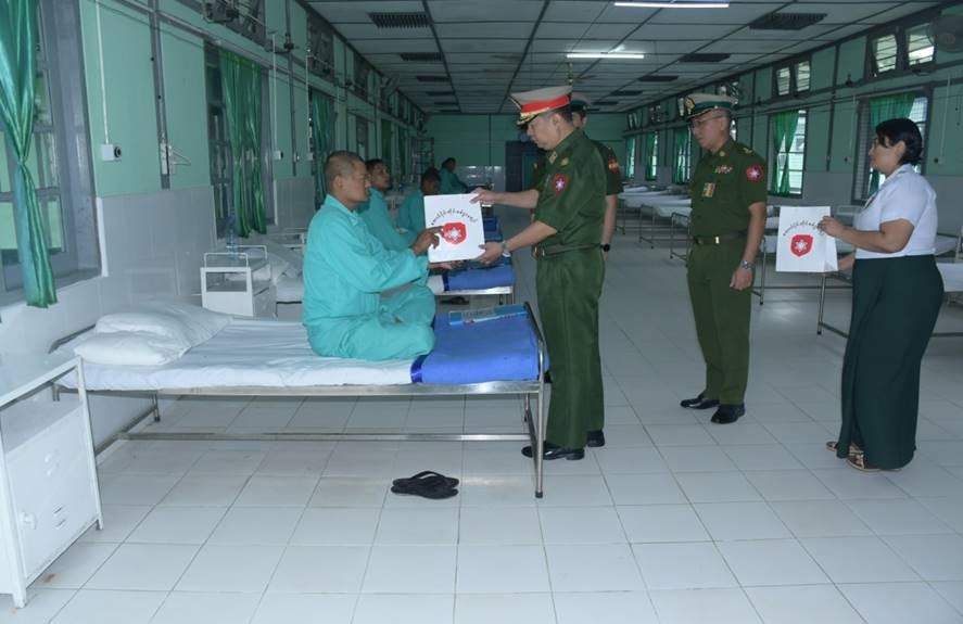 ကယားပြည်နယ်၊ လွိုင်ကော်မြို့ရှိ တပ်မတော်ဆေးရုံ၊ ရှမ်းပြည်နယ် (တောင်ပိုင်း)၊ ခိုလမ်မြို့ရှိ တပ်မတော်ဆေးရုံ၊ မွန်ပြည်နယ်၊ မော်လမြိုင်မြို့ရှိ တပ်မတော်ဆေးရုံ၊ ရန်ကုန်တိုင်းဒေသကြီး၊ မင်္ဂလာဒုံမြို့နယ်ရှိ တပ်မတော်အရိုး ရောဂါအထူးကုဆေးရုံကြီး (ခုတင်-၅၀၀)နှင့် တပ်မတော်ဆေးရုံကြီး (ခုတင်-၁၀၀၀)၊ ဧရာဝတီတိုင်းဒေသကြီး၊ ပုသိမ်မြို့ရှိ နယ်မြေခံဆေးတပ်ရင်း၊ ပဲခူးတိုင်းဒေသကြီး၊ တောင်ငူမြို့နှင့် ပြည်မြို့တို့ရှိ တပ်မတော်ဆေးရုံများ၌ တက်ရောက်ဆေးကုသမှုခံယူနေသော သံဃာတော်များ၊ အရာရှိ၊ စစ်သည်၊ မိသားစုဝင်များ၊ ပြည်သူ့စစ်(ဌာနေ) တပ်ဖွဲ့ဝင်များ၊ စစ်မှုထမ်းဟောင်းအဖွဲ့ဝင်များ၊ မြန်မာနိုင်ငံရဲတပ်ဖွဲ့ဝင်များနှင့် ဒေသခံပြည်သူများအား ဇူလိုင်လ ၁၁ ရက်နှင့် ယနေ့တို့တွင် သက်ဆိုင်ရာတိုင်းစစ်ဌာနချုပ်အသီးသီးမှ တိုင်းမှူးများနှင့်တာဝန်ရှိသူများက သွားရောက်ကြည့်ရှု၍ တစ်ဦးချင်း၏ရောဂါဖြစ်ပွားမှု၊ ဆေးဝါးကုသပေးထားမှုနှင့် ကျန်းမာရေးတိုးတက်ကောင်းမွန်မှုအခြေအနေများကို ရင်းရင်းနှီးနှီးမေးမြန်း အားပေးစကားပြောကြားပြီး အာဟာရဖြည့်စားသောက်ဖွယ်ရာများနှင့် ထောက်ပံ့ငွေများပေးအပ်ကြသည်။