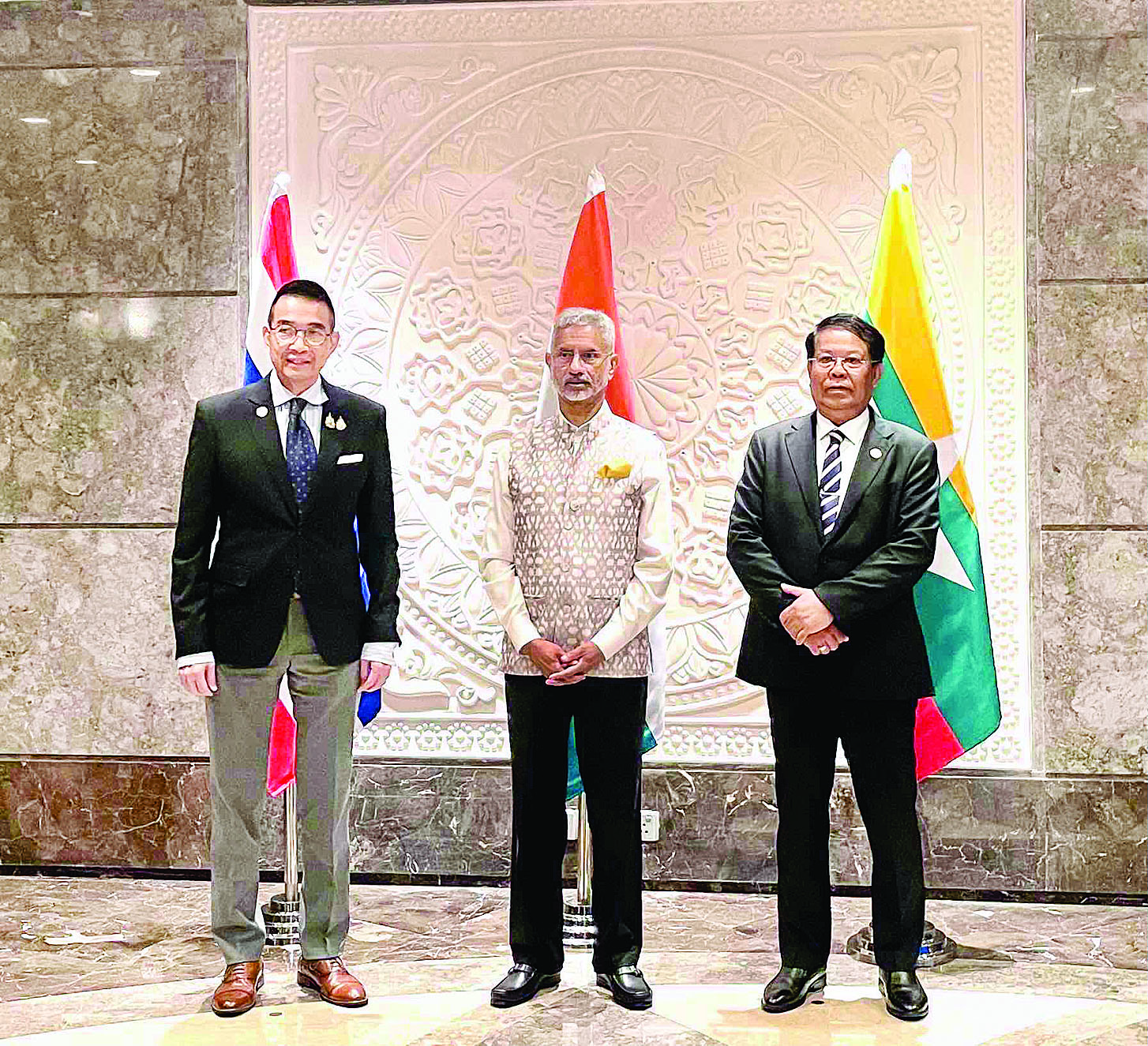 “မြန်မာ - အိန္ဒိယ - ထိုင်း သုံးနိုင်ငံအစည်းအဝေး” သို့ အိန္ဒိယပြည်ပရေးရာဝန်ကြီး ဒေါက်တာအက်စ်ဂျိုင်ရှန်ကာနှင့် ထိုင်းနိုင်ငံခြားရေးဝန်ကြီး မစ္စတာမာရစ် ဆတ်ငီယမ်ဖုန်တို့ တက်ရောက်ခဲ့ကြသည်။