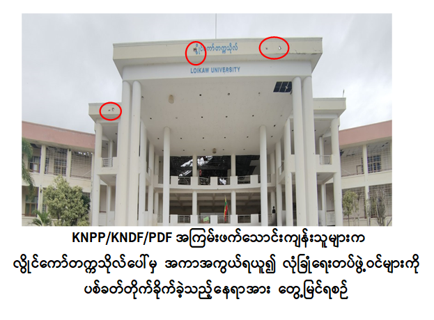 အလားတူ ၂၀၂၃ ခုနှစ် နိုဝင်ဘာ ၁၃ ရက်နေ့၌ KNPP ၊ KNDF အဖွဲ့များနှင့် PDF အမည်ခံအကြမ်းဖက်သမားများသည် စစ်ရေးနှင့်သက်ဆိုင်သော ပစ်မှတ်မဟုတ်သည့် လွိုင်ကော်တက္ကသိုလ်အား လက်နက်ကြီး၊ လက်နက်ငယ်များဖြင့် ရည်ရွယ်ချက်ရှိရှိ လာရောက်ပစ်ခတ်တိုက်ခိုက်ခဲ့ပြီး တက္ကသိုလ်တွင် တာဝန်ထမ်းဆောင်လျက်ရှိသည့် ပညာရေးဆိုင်ရာဝန်ထမ်းအချို့နှင့် ပညာသင်ကြားလျက်ရှိသည့် ကျောင်းသား၊ ကျောင်းသူအချို့တို့အား အတင်းအဓမ္မဖမ်းဆီးခေါ်ဆောင်ခဲ့ကြသကဲ့သို့ ကယားပြည်နယ်၊ လွိုင်ကော်ဒေသအတွင်း တည်ငြိမ်အေးချမ်းမှုပျက်ပြားစေရန် ရည်ရွယ်၍ မိုးဗြဲ၊ ဖယ်ခုံ၊ လွိုင်ကော်၊ ဒီမော့ဆိုးမြို့နယ်အတွင်းရှိ လုံခြုံရေးတပ်ဖွဲ့ဝင်များ၏ တပ်၊ စခန်းများအား ဇန်နဝါရီ ၂၆ ရက်တွင် အင်အားအလုံးအရင်းဖြင့် ဝင်ရောက်တိုက်ခိုက်ခဲ့ပြီး မြို့နှင့်အနီးပတ်ဝန်းကျင်အတွင်း ဒေသခံပြည်သူများအား ဖမ်းဆီးသတ်ဖြတ်ခြင်း၊ လူနေအိမ်များ၊ ဈေးများနှင့် အစိုးရအုပ်ချုပ်မှုယန္တရားများရပ်တန့်စေရန် ဌာနဆိုင်ရာအဆောက်အဦများအား မီးရှို့ဖျက်ဆီးခြင်း၊ မိုင်းထောင်ခြင်း၊ လုံခြုံရေးတပ်ဖွဲ့ဝင်များအား လူနေအိမ်အဆောက်အဦများ၊ ဌာနဆိုင်ရာအဆောက်အဦများနှင့် ပညာရေး၊ ကျန်းမာရေးဆိုင်ရာအဆောက်အဦများအား အကာအကွယ်ရယူ၍ ပစ်ခတ်တိုက်ခိုက်ခြင်း စသည့် အကြမ်းဖက်လုပ်ရပ်များကို လုပ်ဆောင်ခဲ့ကြသည်။