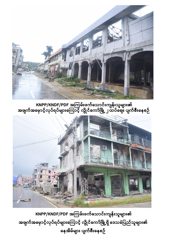 တပ်မတော်စစ်ကြောင်းများက လွိုင်ကော်မြို့နှင့် အနီးပတ်ဝန်းကျင်အတွင်း နယ်မြေလုံခြုံရေးဆောင်ရွက်ပြီးသည့်အချိန်၌ ဒေသခံပြည်သူများအပါအဝင် တပ်မတော်သားများ၊ မြန်မာနိုင်ငံရဲတပ်ဖွဲ့ဝင်များ၊ ဌာနဆိုင်ရာဝန်ထမ်းများက ပြန်လည်ထူထောင်ရေးလုပ်ငန်းများဆောင်ရွက်ခြင်း၊ စုပေါင်းသန့်ရှင်းရေးဆောင်ရွက်ပေးခြင်းတို့ကို အင်တိုက်အားတိုက် ဝိုင်းဝန်းဆောင်ရွက်ပေးလျက်ရှိရာ ယနေ့နံနက်ပိုင်းတွင် ကယားပြည်နယ် အစိုးရအဖွဲ့ဝန်ကြီးချုပ် ဦးဇော်မျိုးတင်နှင့် အရှေ့ပိုင်းတိုင်းစစ်ဌာနချုပ် တိုင်းမှူး ဗိုလ်ချုပ် ဇော်မင်းလတ်တို့က တာဝန်ရှိသူများနှင့်အတူ သွားရောက်ကြည့်ရှုအားပေးကာ လိုအပ်သည်များ ပေါင်းစပ်ညှိနှိုင်းဆောင်ရွက်ပေးသည်။