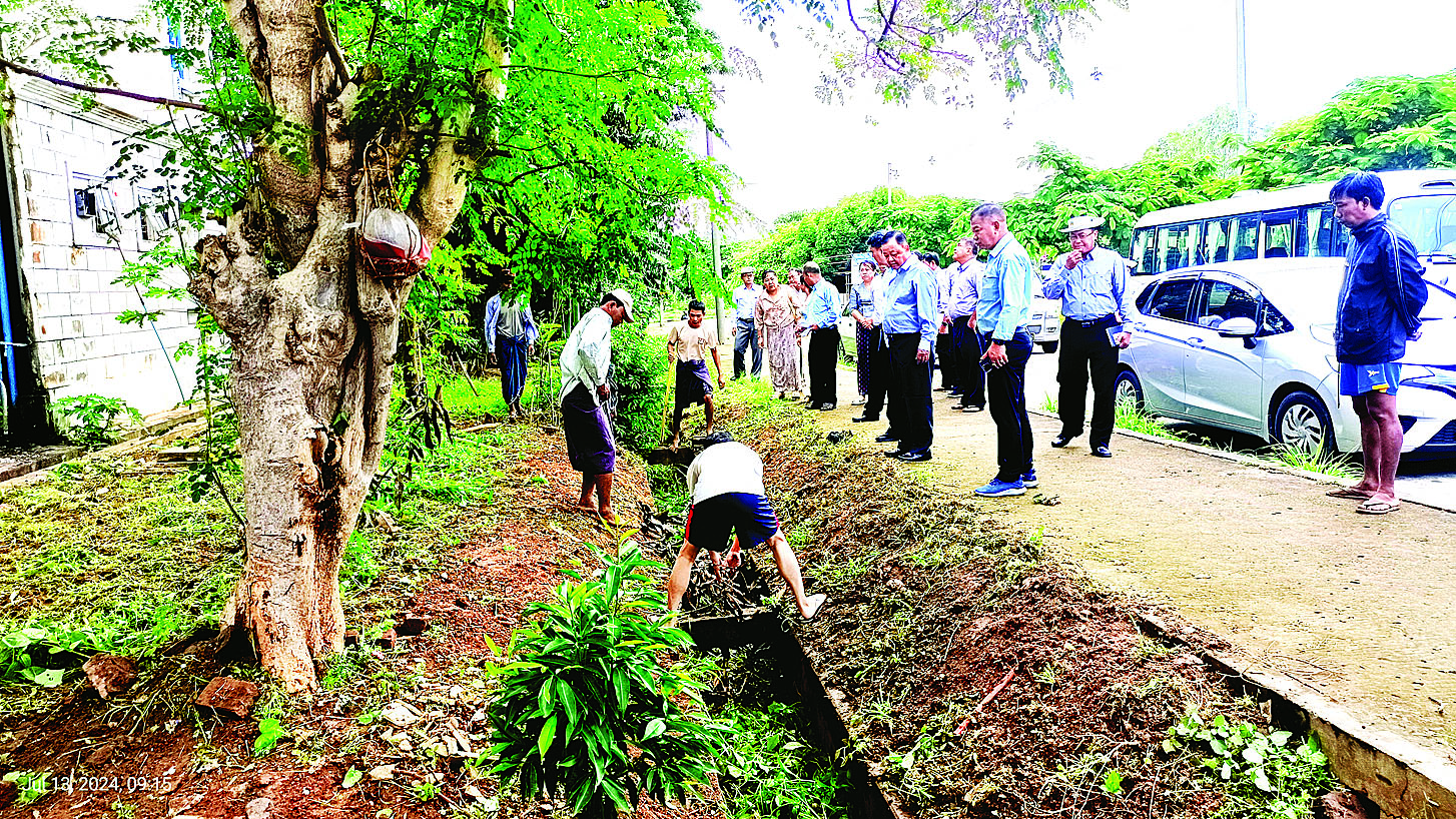 ဆောက်လုပ်ရေးဝန်ကြီးဌာန ဒုတိယဝန်ကြီး ဦးဝင်းဖေသည် တာဝန်ရှိသူများနှင့်အတူ ယနေ့နံနက်ပိုင်းတွင် ပြည်ထောင်စုနယ်မြေ နေပြည်တော် ဇမ္ဗူသီရိမြို့နယ်ရှိ ဆောက်လုပ်ရေးဝန်ကြီးဌာန အရာထမ်း/အမှုထမ်း ဝန်ထမ်းအိမ်ရာများသို့ ရောက်ရှိပြီး တိုက်ပတ်ဝန်းကျင်သန့်ရှင်းသာယာလှပရေး ဆောင်ရွက်ထားရှိမှုနှင့် တိုက်ပတ်လည်ရေမြောင်းများ ရေစီးရေလာကောင်းမွန်ရေးဆောင်ရွက်ထားရှိမှု အခြေအနေကို ကြည့်ရှုစစ်ဆေးသည်။