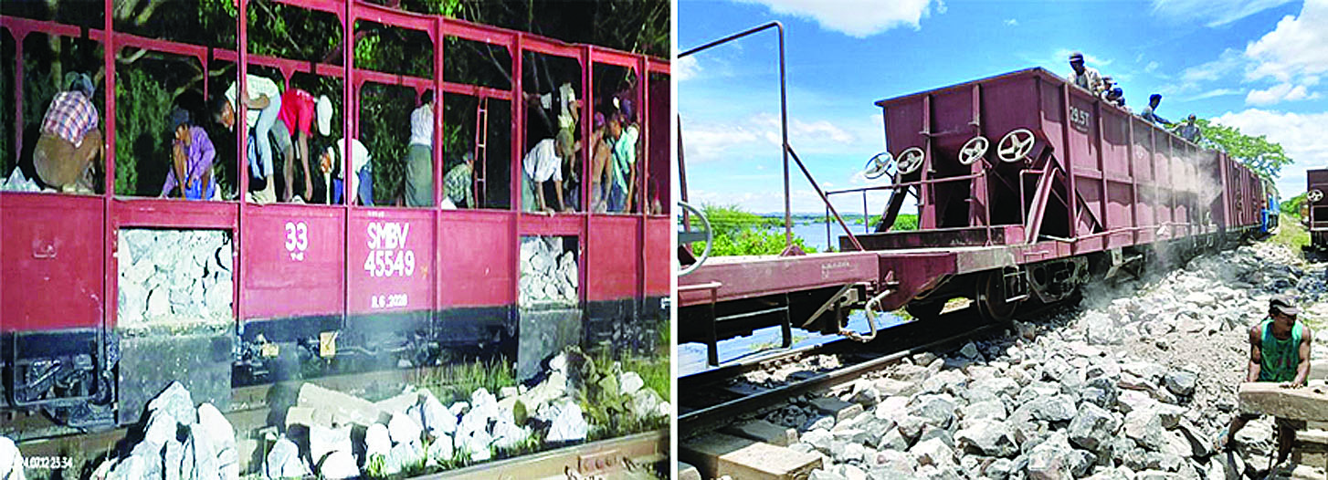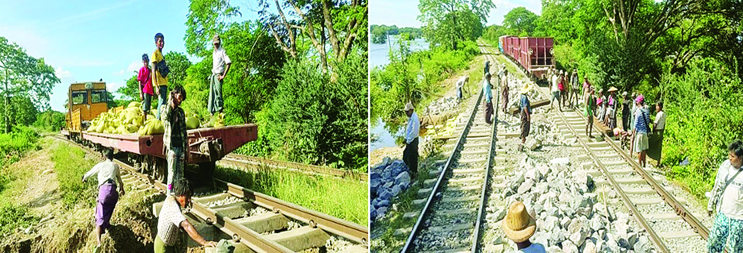 ရထားလမ်းထူးပေါက်ရေကျော်မှုဖြစ်ပွားရာနေရာသို့ လမ်းပိုင်းအချိန်မီ ပြန်လည်ဖွင့်လှစ်နိုင်ရေး မြန်မာ့မီးရထား တာဝန်ရှိဝန်ထမ်းများနှင့် လုပ်သား ၄၀ တို့သည် အချိန်နှင့်တစ်ပြေးညီရောက်ရှိခဲ့ပြီး ကျောက်ရထားနှင့် သံလမ်းပြေးRCGယာဉ်များ အသုံးပြု၍ ကျောက်ကြီး ၃၅ ကျင်း၊ ကျောက်မှုန့်အိတ် ၃၀၀ နှင့် သဲအိတ် ၁၀၀ အိတ်တို့ကို ဖြစ်ပွားရာနေရာသို့ ပို့ဆောင်ပေးခြင်း၊ အဆိုပါကျောက်ကြီးများ၊ ကျောက်မှုန့်နှင့် သဲအိတ်များ အသုံးပြု၍ ထူးပေါက်များဖာခြင်း၊ သစ်သားဇလီဖားနှင့် ကွန်ကရစ်ဇလီဖားတုံးများ အသုံးပြု၍ ထူးပေါက်နေရာ၌ ဖားထပ်ခွေခြင်းများ ပြုလုပ်ဆောင်ရွက်ခဲ့ရာ အဆန်လမ်းကို ယင်းနေ့ ည ၁၀ နာရီ ၂ မိနစ်တွင် ပြန်လည်ဖွင့်လှစ်နိုင်ခဲ့ခြင်းကြောင့် ရန်ကုန်-မန္တလေး ပို့ဆောင်ပြေးဆွဲပေးလျက်ရှိသော လူစီးရထားများ ကြန့်ကြာမှုမရှိခဲ့ကြောင်း သိရသည်။
