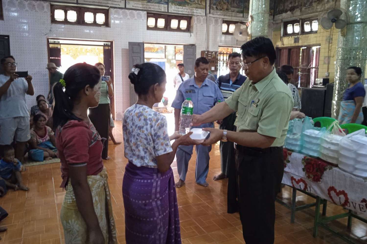 ထိုသို့ ရေဘေးသင့်အိမ်ထောင်စုများအား ဘေးလွတ်ရာသို့ ကူညီရွှေ့ပြောင်းပေးခဲ့ပြီး သရက်တောရပ်ကွက်၊ ဘိုကုန်းဓမ္မာရုံတွင် ဇူလိုင် ၁၂ က အိမ်ထောင်စု(၁၃)စု၊ လူဦးရေ (၄၆) ဦးအား လက်ခံထားရှိခဲ့ပြီး ဇူလိုင် ၁၃ တွင် ထပ်တိုးအိမ်ထောင်စု (၈)စု၊ လူဦးရေ (၃၀) ဦးတို့အား အောင်လံခရိုင်စီမံအုပ်ချုပ်ရေးအဖွဲ့ဥက္ကဋ္ဌနှင့် အဖွဲ့ဝင်များ၊ ဌာနဆိုင်ရာများက စားသောက်ဖွယ်ရာများနှင့် လိုအပ်သည်များကို ဆက်လက်ဆောင်ရွက်ပေးမည်ဖြစ်ကြောင်း သိရသည်။