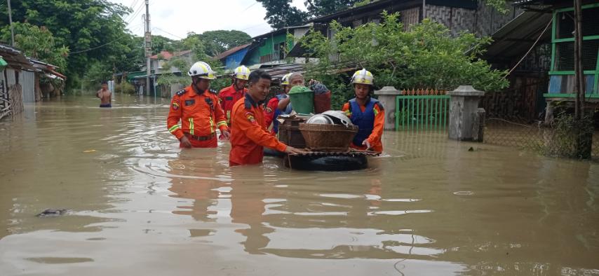 ပဲခူးတိုင်းဒေသကြီး၊ ပြည်ခရိုင်၊ ရွှေတောင်မြို့နယ်အတွင်း ဧရာဝတီမြစ်ရေသည် စိုးရိမ်ရေအမှတ်(၂၉၀၀)စင်တီမီတာ၊ (၉၅.၀၀)ပေထိမြင့်တက်၍ ရေဝင်အိမ်ထောင်စုများအား မြို့နယ်မီးသတ်ဦးစီးမှူးရုံးမှ မြို့နယ်မီးသတ်ဦးစီးမှူးဦးသက်ပိုင်ထွန်းဦးဆောင်၍ သန္ဓေမီးသတ်တပ်ဖွဲ့ဝင်များ၊ မြို့နယ်အထွေထွေအုပ်ချုပ်ရေးဦးစီးဌာနမှ ပူးပေါင်းအဖွဲ့အစည်းများ၊ ရွှေတောင်မြို့နယ်ပရဟိတအသင်းအဖွဲ့များက ရွှေတောင်မြို့နယ်အတွင်းရှိ (ယွန်းတန်းရပ်ကွက်၊ သရက်တောရပ်ကွက်၊ ကြာနီကန်ရပ်ကွက်၊ မင်းတဲကျွန်းအုပ်စု၊ သောင်ပြင်ကုန်းအုပ်စု)များမှ ဧရာဝတီမြစ်ရေ ယနေ့ထက်မံဝင်ရောက်သည့် အိမ်ခြေ(၉၁)၊ အိမ်ထောင်စု(၁၇၀)၊ လူဦးရေ(၄၉၈)ဦးတို့အား လူအသုံးအဆောင်ပစ္စည်းများ၊ အဝတ်အထည်များ၊ အိမ်ထောင်ပရိဘောဂပစ္စည်းများကို ဘေးလွတ်ရာရေးဘေးကယ်ဆယ်ရေးစခန်းများသို့ ရွှေ့ပြောင်းပေးခဲ့သည်။
