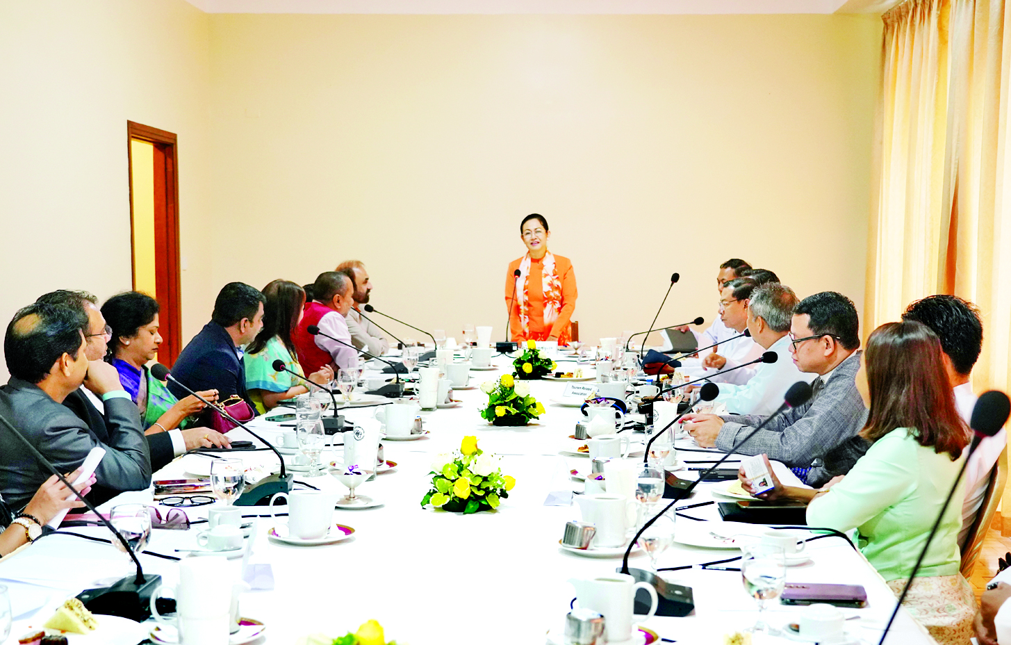 အစည်းအဝေးသို့ ဟိုတယ်နှင့်ခရီးသွားညွှန်ကြားမှုဦးစီးဌာန ညွှန်ကြားရေးမှူးချုပ်နှင့် တာဝန်ရှိသူများ၊ အိန္ဒိယသံရုံးမှ ဒုတိယအတွင်းဝန် Mr. Ashok Kumar ၊ အိန္ဒိယ-မြန်မာ စီးပွားရေးလုပ်ငန်းရှင်များအသင်းမှကိုယ်စားလှယ်များ၊ မြန်မာနိုင်ငံခရီးသွားလုပ်ငန်း အဖွဲ့ချုပ်ဥက္ကဋ္ဌနှင့် ညီနောင်အသင်းများမှ တာဝန်ရှိသူများ တက်ရောက်ကြသည်။