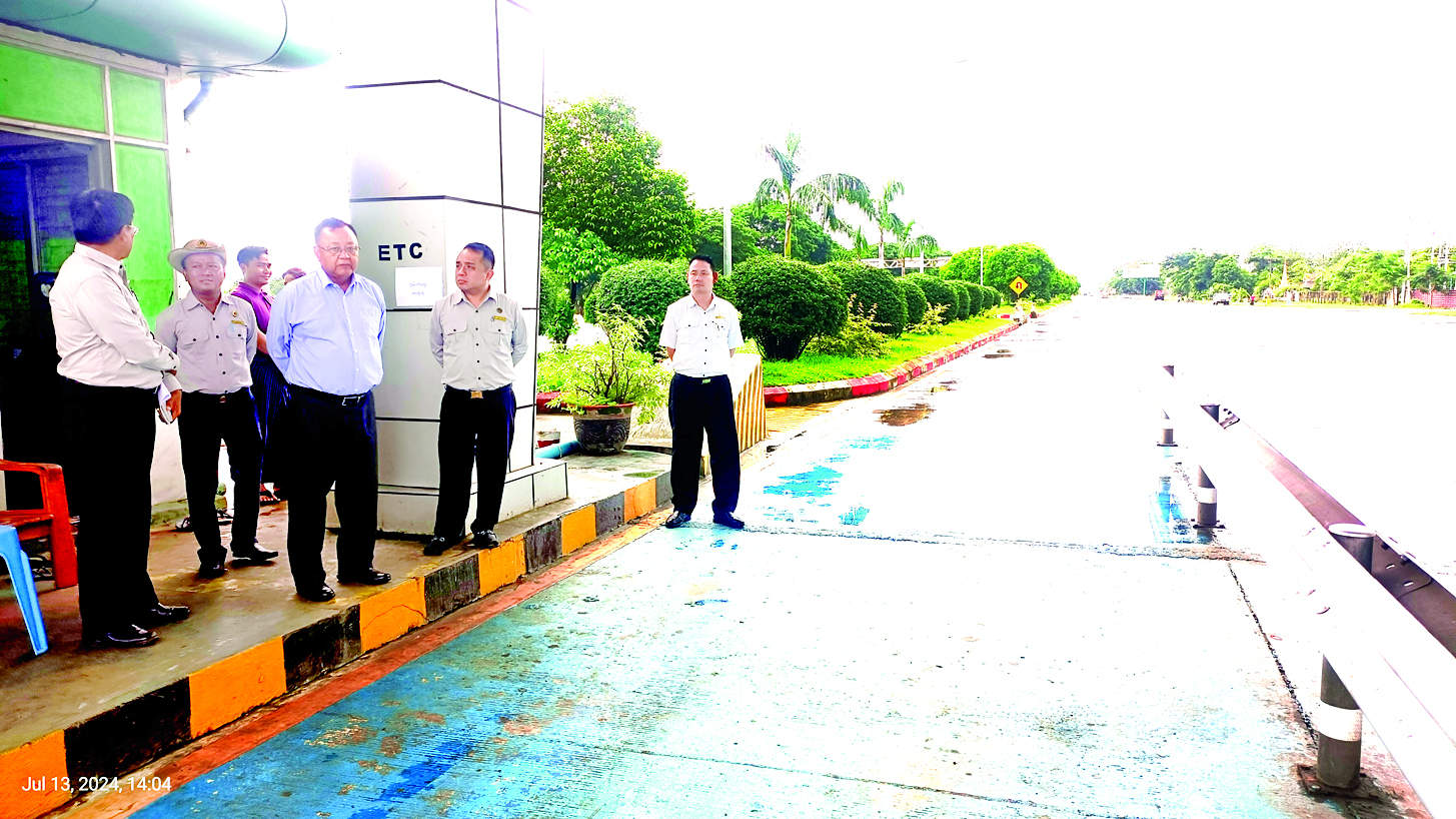 ဆောက်လုပ်ရေးဝန်ကြီးဌာန ဒုတိယဝန်ကြီး ဦးဝင်းဖေသည် တာဝန်ရှိသူများနှင့်အတူ ယမန်နေ့ မွန်းလွဲပိုင်းက ရန်ကုန်-မန္တလေး အမြန်လမ်းမကြီး (နေပြည်တော်-ရန်ကုန်လမ်းပိုင်း) ပေါ်ရှိ လမ်းအသုံးပြုခကောက်ခံလျက်ရှိသည့် တိုးဂိတ်များကို ကြည့်ရှုစစ်ဆေးသည်။