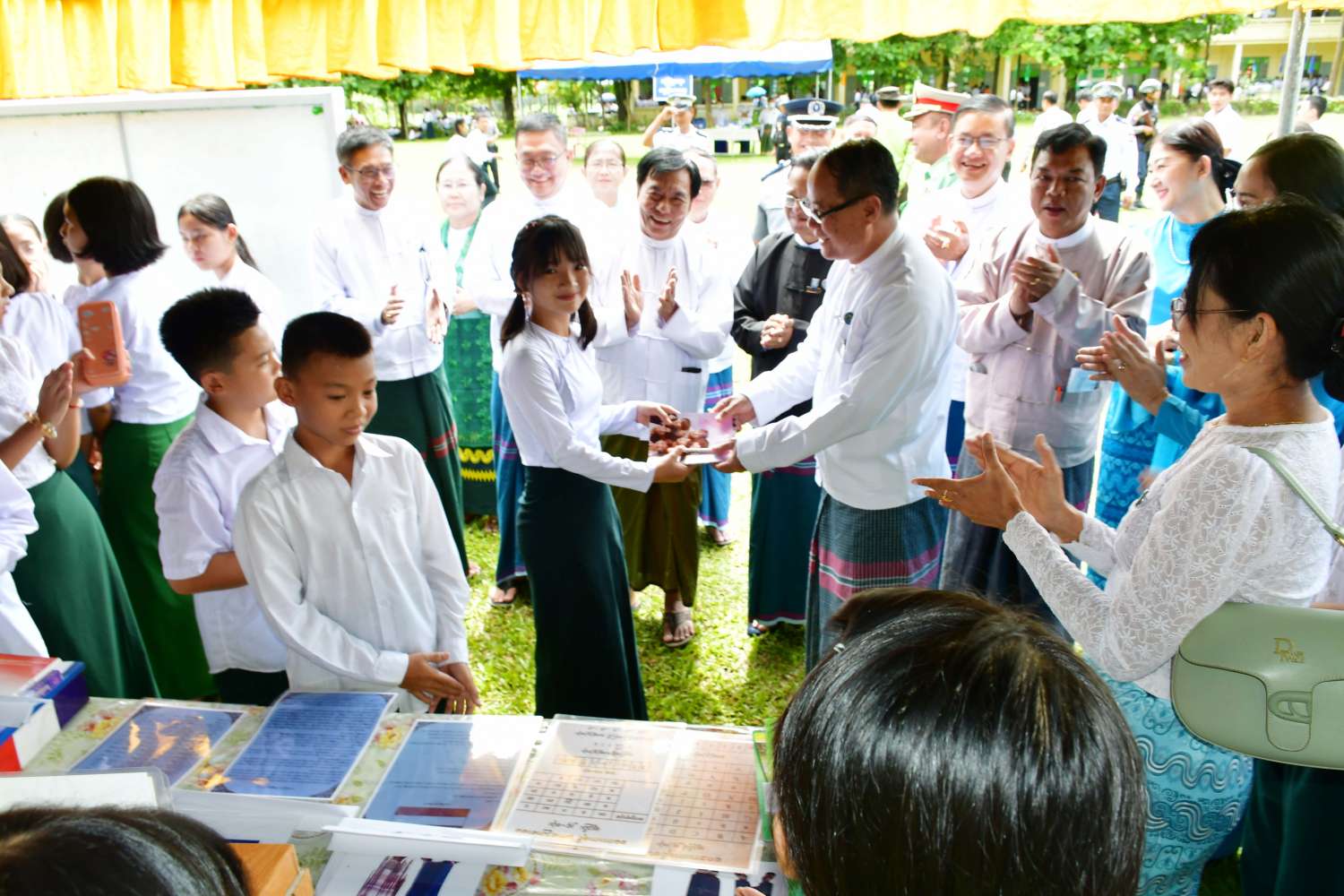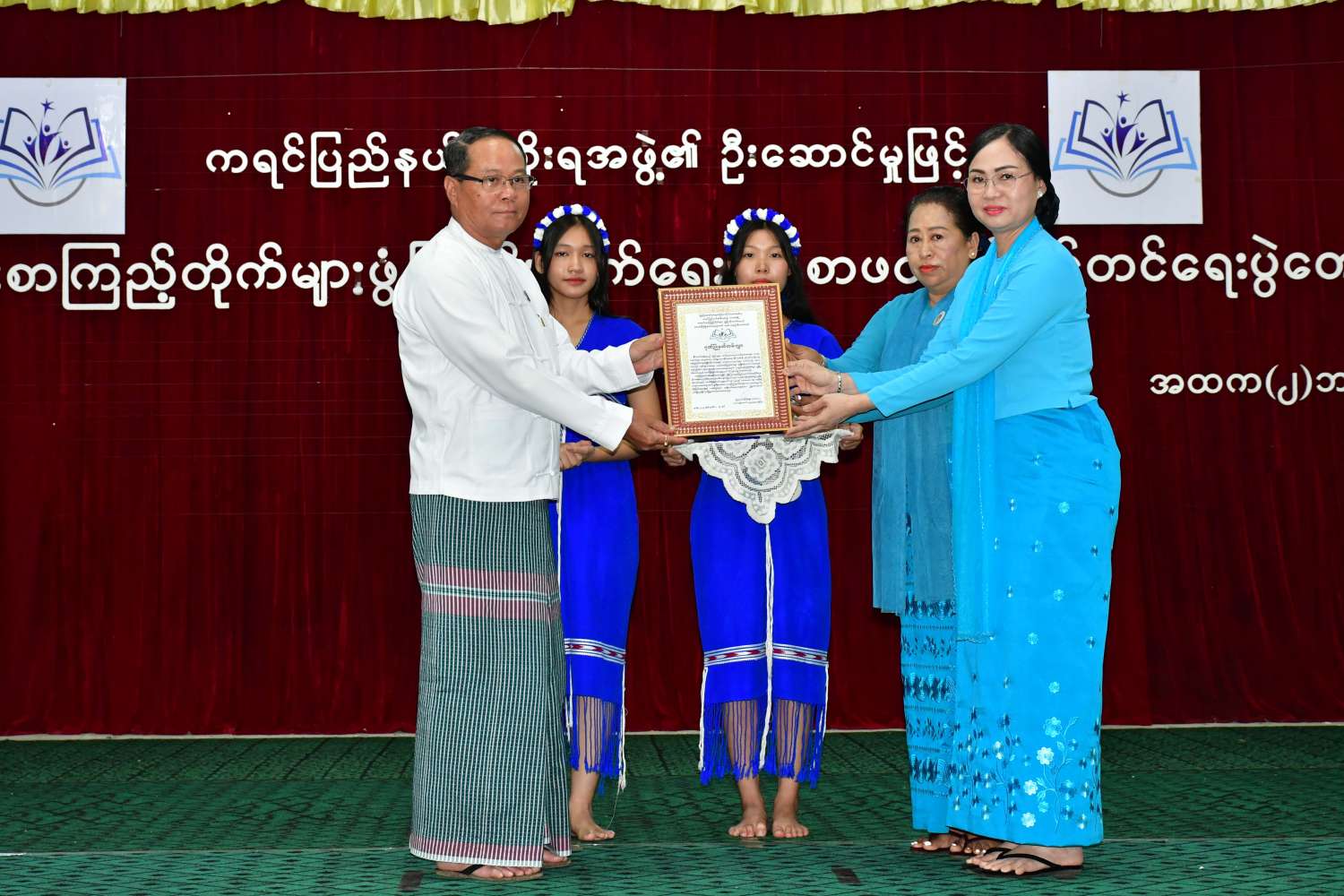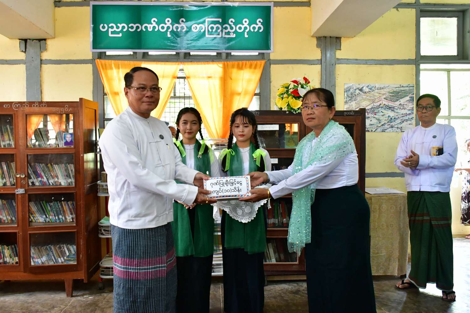 ယင်းနောက် ဘားအံပညာရေးဒီဂရီကောလိပ်နှင့် ဘားအံတက္ကသိုလ်တို့မှ ကျောင်းသား၊ကျောင်းသူများက တေးသီချင်းများဖြင့် ကပြဖျော်ဖြေကြပြီး ပြည်နယ်ဝန်ကြီးချုပ်က ကရင်ပြည်နယ်အတွင်း ကျေးရွာစာကြည့်တိုက် အဆောက်အဦအသစ်ဆောက်လုပ်ရန်အတွက် ကျေးရွာစာကြည့်တိုက်တစ်တိုက်လျှင် ငွေကျပ်(၁၅၀)သိန်းနှုန်းဖြင့် ကျေးရွာစာကြည့်တိုက်(၅)တိုက်ကို လှူဒါန်းပေးခဲ့ကြသော အလှူရှင်များအား ဂုဏ်ပြုမှတ်တမ်းလွှာများ ပြန်လည်ပေးအပ်ကာ ပြည်နယ်အမျိုးသမီးရေးရာအဖွဲ့မှ လှူဒါန်းသော စာအုပ်စာစောင်များကို လက်ခံရယူ၍ ဂုဏ်ပြုမှတ်တမ်းလွှာပြန်လည်ပေးအပ်သည်။