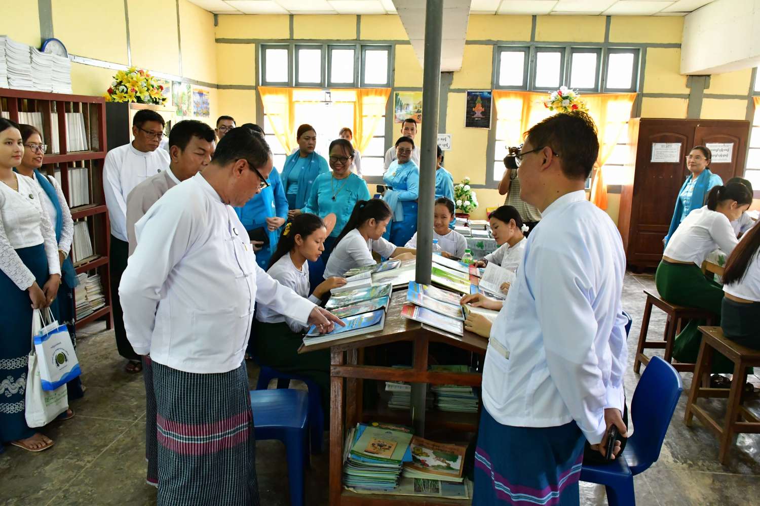 ထို့နောက် ကျောင်းစာကြည့်တိုက်များ ဖွံ့ဖြိုးတိုးတက်ရေးနှင့် စာဖတ်ရှိန်မြှင့်တင်ရေးပွဲတော် အခမ်းအနားကို အဆိုပါအထက်တန်းကျောင်း ရွှေရတုခန်းမ၌ ဆက်လက်ကျင်းပရာ ပြည်နယ်ဝန်ကြီးချုပ်နှင့် တက်ရောက်လာသူများက သုတဝေဖြာမျှဝေရာ ပညာဘဏ်တိုက် စာကြည့်တိုက် Video Clip ကို ကြည့်ရှုခဲ့ကြပြီး ပြည်နယ်ဝန်ကြီးချုပ်က ကျောင်းသားလူငယ်များသည် နိုင်ငံ၏မျိုးဆက်သစ်များ၊ အရေးပါသည့် အဖိုးတန်လူသား အရင်းအမြစ်များ၊ အနာဂတ် နိုင်ငံတော်ဖွံ့ဖြိုးတိုးတက်ရေးဆောင်ရွက်ရာတွင် ပါဝင်ဆောင်ရွက်ကြရမည့်သူများဖြစ်သည့်အတွက် အသိပညာ ဗဟုသုတ ဉာဏ်ပညာကြွယ်ဝသူများဖြစ်ရန်လိုအပ်ကာ အကောင်းဆုံးနှင့်အရိုးရှင်းဆုံးနည်းလမ်းမှာ စာပေဖတ်ရှုလေ့လာခြင်းပင်ဖြစ်ကြောင်း၊ စာအုပ်စာပေများ ရရှိနိုင်သည့် စာကြည့်တိုက်များသို့ သွားရောက်စာဖတ်ကြသည့်ဓလေ့၊ ဝင်ထွက်သွားလာသည့် အလေ့အကျင့်ကောင်းများကို မွေးမြူနိုင်မှသာ အသက်အရွယ်ကြီးရင့်လာချိန်တွင် စာဖတ်သည့် အလေ့အထများ စွဲမြဲလာမည်ဖြစ်ပြီး သို့မှသာစာကြည့်တိုက်ယဉ်ကျေးမှုထွန်းကား၍ စာကြည့်တိုက်များ ရေရှည်ဖွံ့ဖြိုးတိုးတက်လာမည်ဖြစ်ကြောင်း ပြောကြားသည်။