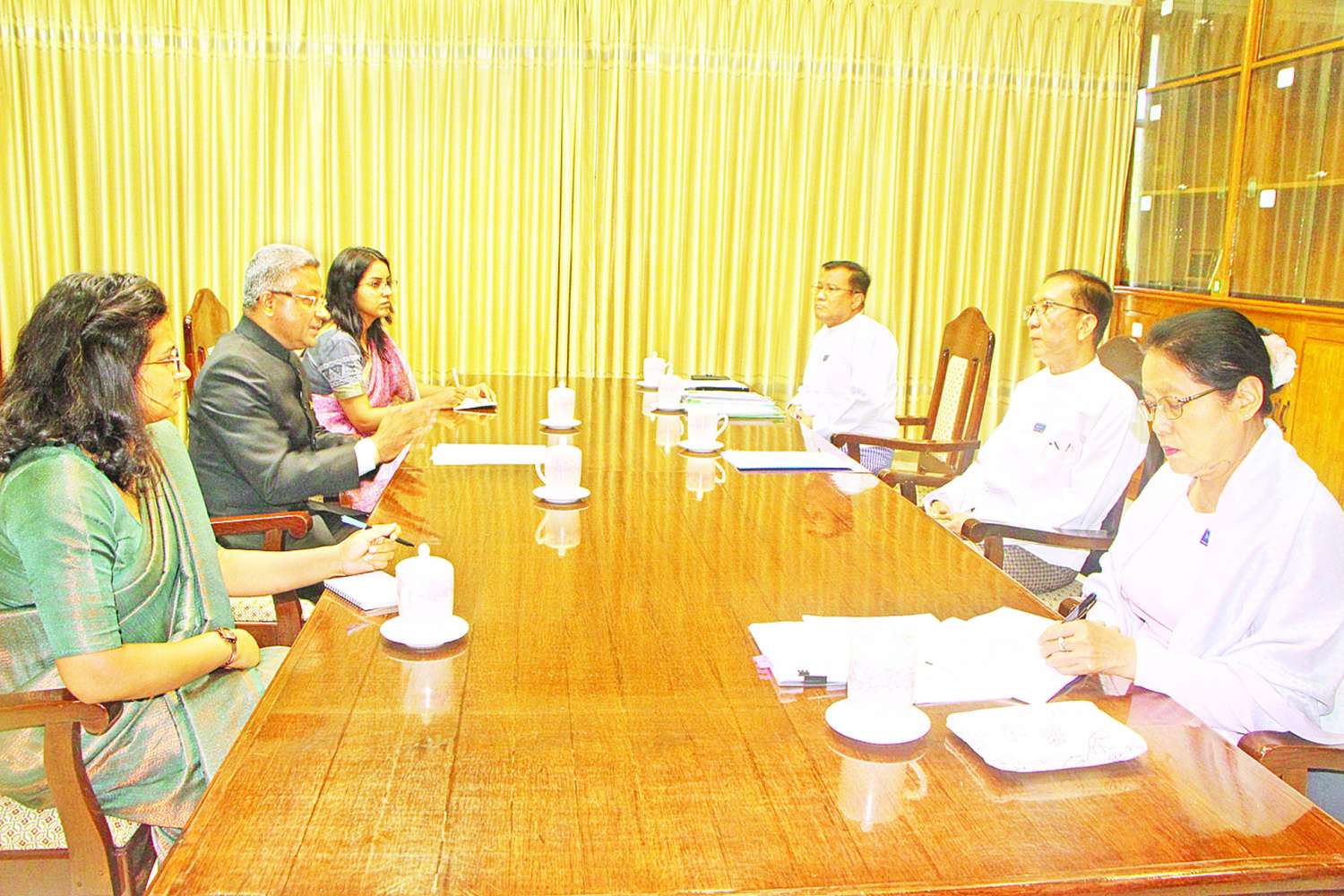 ဒုတိယဝန်ကြီးချုပ်နှင့် စီမံကိန်းနှင့်ဘဏ္ဍာရေးဝန်ကြီးဌာန ပြည်ထောင်စုဝန်ကြီး ဦးဝင်းရှိန်သည် မြန်မာနိုင်ငံဆိုင်ရာ အိန္ဒိယနိုင်ငံသံအမတ်ကြီး Mr. Abhay Thakur ကို ယနေ့မွန်းလွဲပိုင်းတွင် နေပြည်တော်ရှိ အဆိုပါဝန်ကြီးဌာန၌ လက်ခံတွေ့ဆုံသည်။