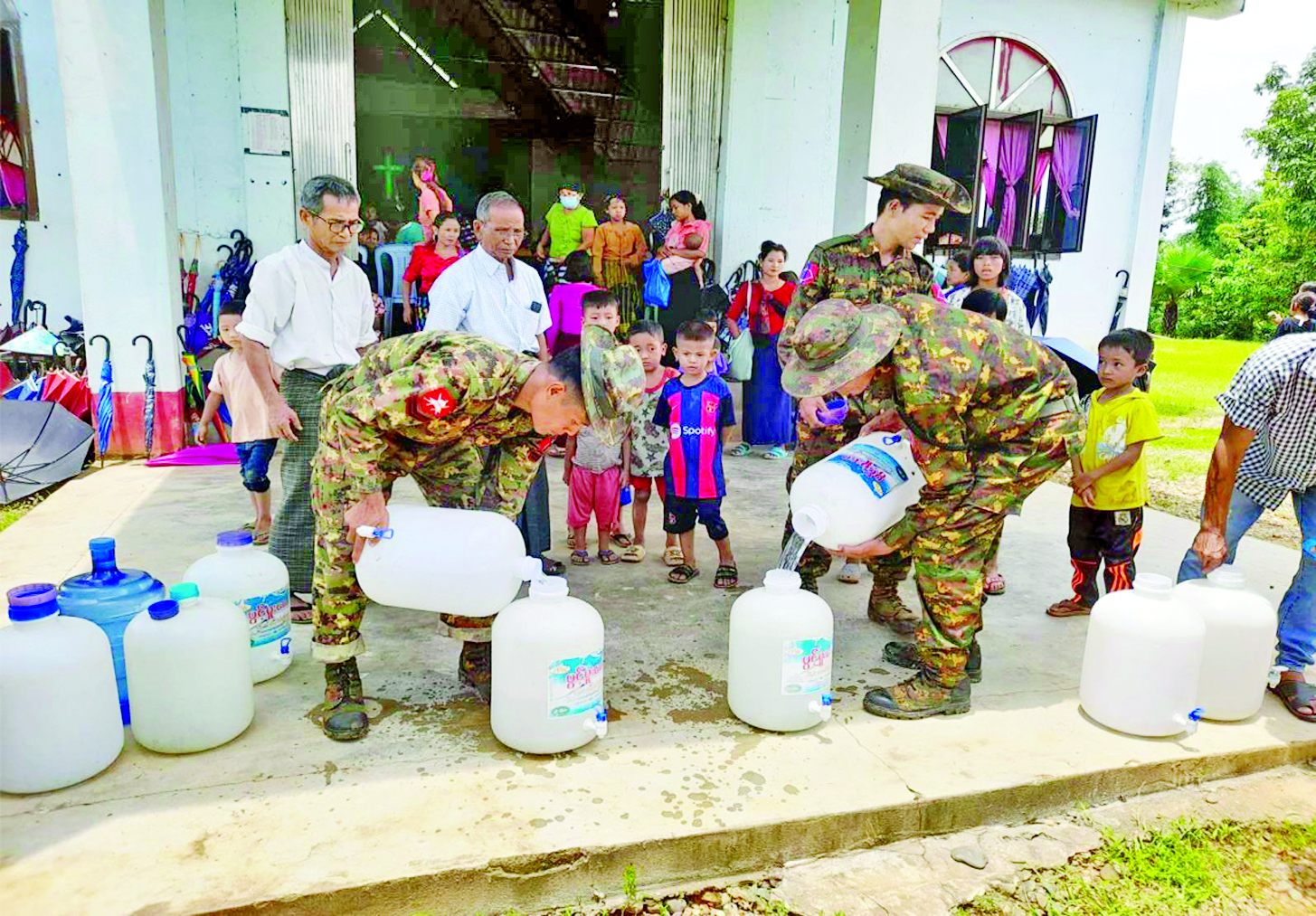 ထိုသို့ဆောင်ရွက်ပေးလျက်ရှိရာ ယနေ့တွင် နယ်မြေခံတပ်မတော်သားများနှင့် ဌာနဆိုင်ရာတာဝန်ရှိသူများက ခန္တီးမြို့နယ်အတွင်းရှိ ဇီးဖြူကုန်းရပ်ကွက် နာဂရိုးရာကွင်း၊ နှစ်ချင်းအသင်းတော်ခရစ်ယာန်ကျောင်း၊ အခြေခံပညာအလယ်တန်းကျောင်း(ဇီးဖြူကုန်း)နှင့် မြသိန်းတန်စေတီတို့ရှိ ရေဘေးသင့်ပြည်သူများအား စားသောက်ဖွယ်ရာများနှင့် သောက်ရေသန့်များ ထောက်ပံ့ပေးအပ်ကာ လိုအပ်သည့် ကူညီကယ်ဆယ်ရေးလုပ်ငန်းများ ဆောင်ရွက်ပေးခဲ့ကြောင်း သိရသည်။