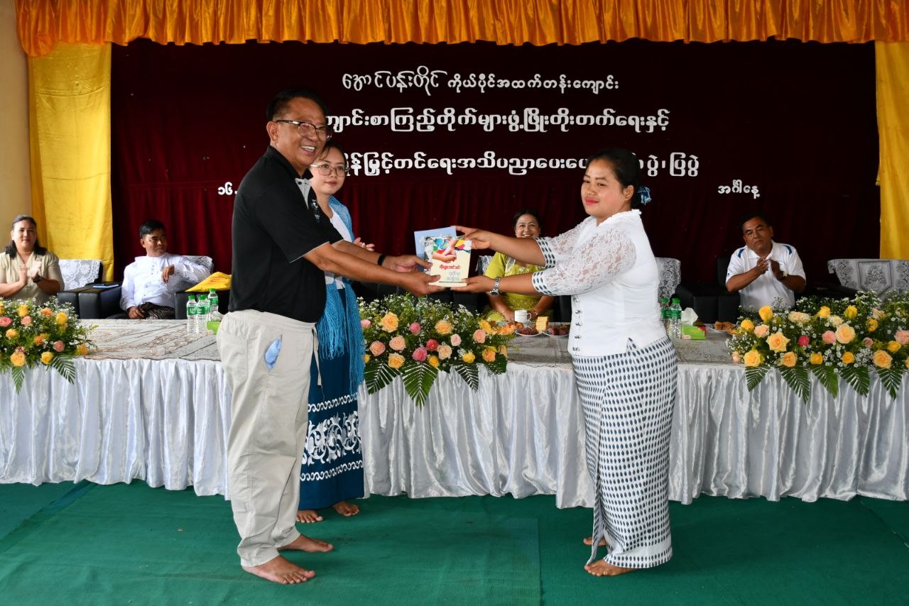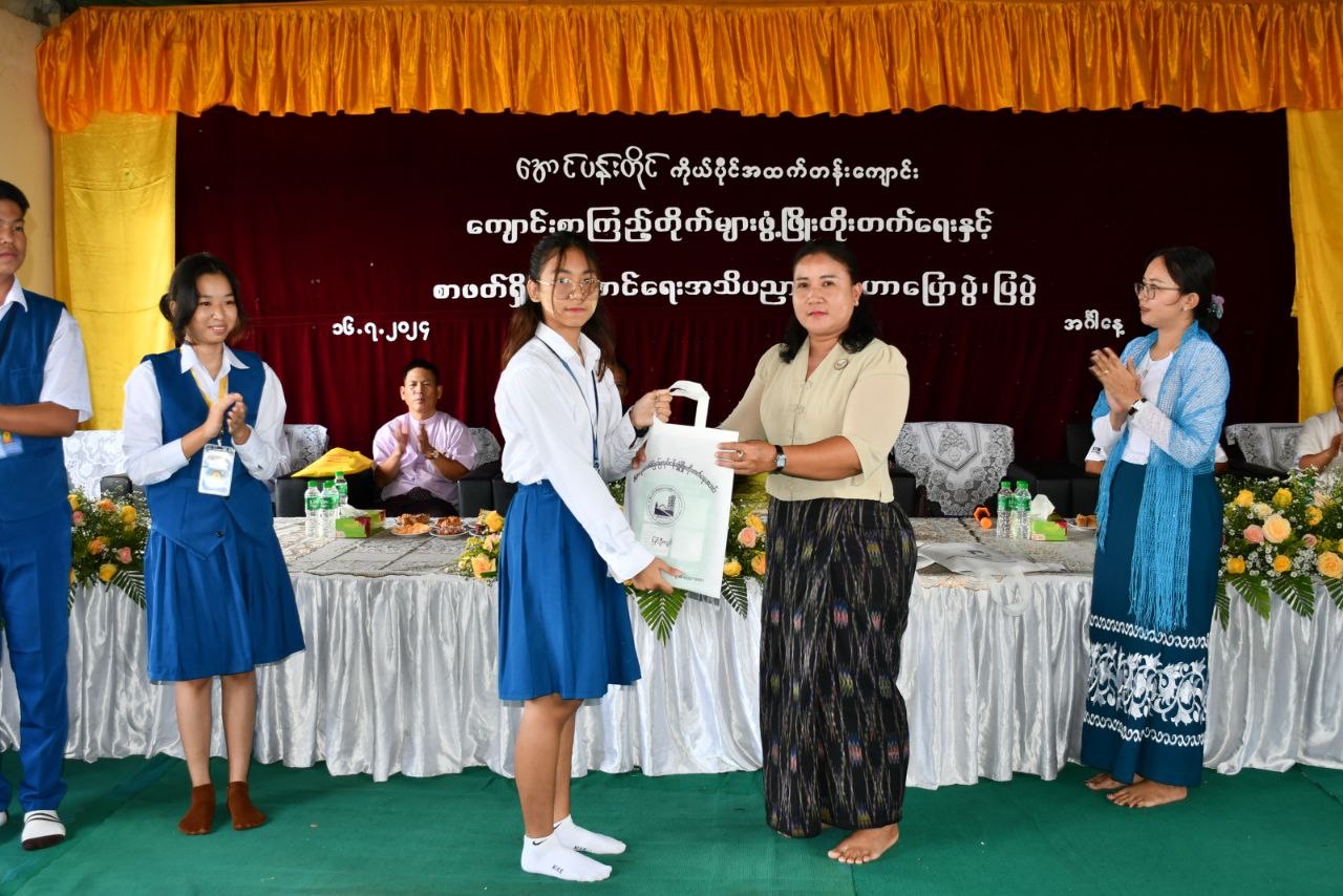 ဆက်လက်၍ ပြင်ဦးလွင်ခရိုင် အိမ်ခြံမြေဖွံ့ဖြိုးတိုးတက်ရေးအသင်းမှ ခရိုင်ဥက္ကဋ္ဌ ဦးမျိုးမင်းက လူငယ်နှင့်ရာဇဝင်ထဲကမှတ်သားဖွယ်ရာများ ခေါင်းစဉ်ဖြင့် လည်းကောင်း၊ ဗမာလူမျိုးစာပေနှင့် ယဉ်ကျေးမှုအသင်း ပြင်ဦးလွင်ခရိုင် ဒုတိယဥက္ကဋ္ဌ ဒေါ်အေဇင်မေက ဗမာလူမျိုးစာပေနှင့် ယဉ်ကျေးမှုထိန်းသိမ်းစောင့်ရှောက်ရေးဆိုင်ရာများ ဟောပြောဆွေးနွေးသည်။ ပြင်ဦးလွင်ခရိုင် စာကြည့်တိုက်ကြီးကြပ်မှုကော်မတီအဖွဲ့ဝင် စာရေးဆရာ ကိုရွှေအောင်သင်းက “ အနာဂတ်ကို ပိုင်စိုးမည့်သူများ ” ခေါင်းစဉ်ဖြင့် ဒေသခံပြည်သူများ စာပေဗဟုသုတဖြစ်ဖွယ်အကြောင်းအရာ များကို ဟောပြောဆွေးနွေးသည်။ ထို့နောက် ဆွေးနွေးချက်များအပေါ် မေးခွန်းများပြန်လည် မေးမြန်းရာ ပြန်လည်ဖြေဆိုဆွေးနွေးနိုင်ကြသော ကျောင်းသား၊ ကျောင်းသူများအား အိမ်ခြံမြေ ဖွံ့ဖြိုးတိုးတက်ရေးအသင်းမှ ခရိုင်ဥက္ကဋ္ဌ၊ မြို့နယ်ဥက္ကဋ္ဌ ဦးဇော်မြင့်နှင့်ဘဏ္ဍာရေးမှူး ဒေါ်စောမိုးမိုးသန်းတို့က အမှတ်တရဂုဏ်ပြုလက်ဆောင်များ ပေးအပ်ချီးမြှင့်ပြီး စာရေးဆရာ ကိုရွှေအောင်သင်းက အောင်ပန်းတိုင်ကိုယ်ပိုင်ကျောင်းစာကြည့်တိုက်အတွက် စာအုပ်များ ပေးအပ်လှူဒါန်းရာ တာဝန်ခံဆရာမ ဒေါ်လွင်မျိုးထွန်းက လက်ခံရယူသည်။